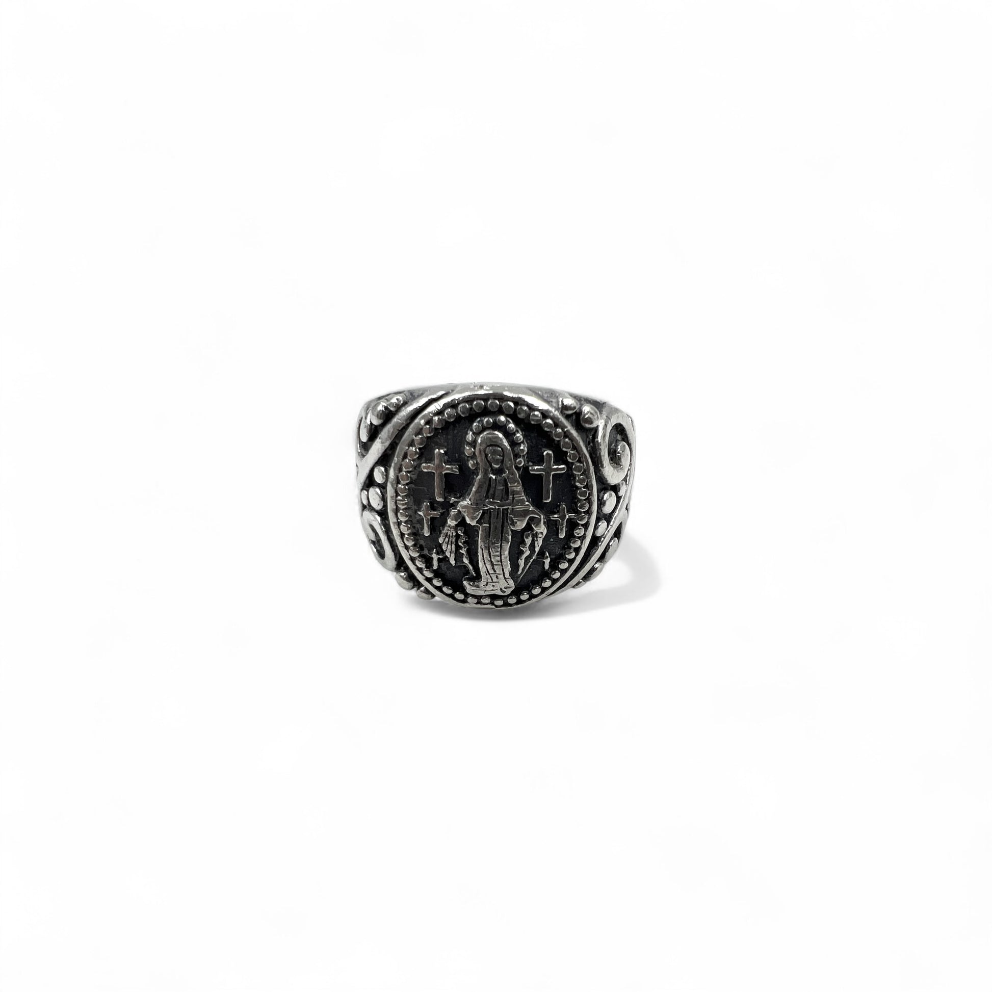 Vintage Virgin Mary Silver Ring 聖母 マリア シルバーリング 指輪 17号 925 クロス アラベスク