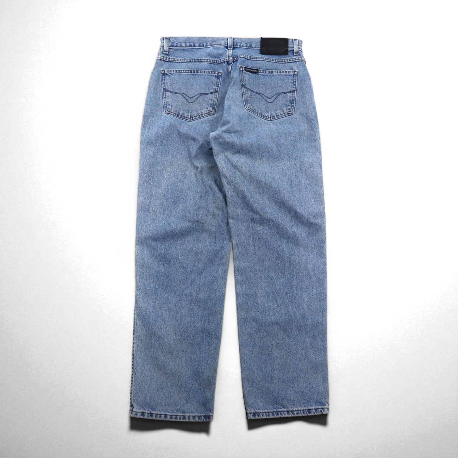 HARLEY DAVIDSON リラックスフィット テーパード デニムパンツ L インディゴ ジッパーフライ レザーパッチ メキシコ製