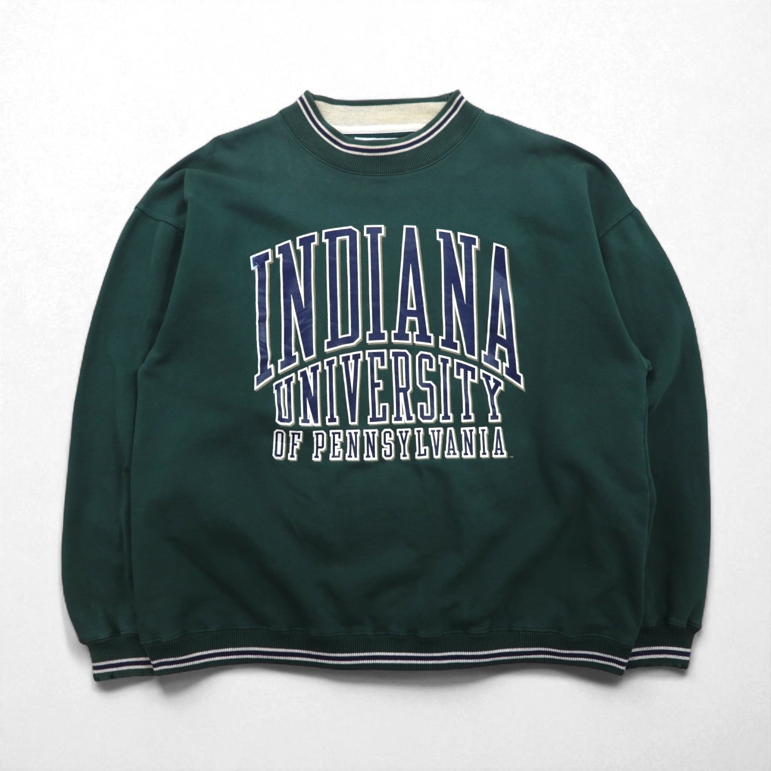 GEAR FOR SPORT 90年代 BIG COTTON リブライン カレッジプリント スウェット トレーナー L グリーン 3段プリント アーチロゴ INDIANA UNIVERSITY