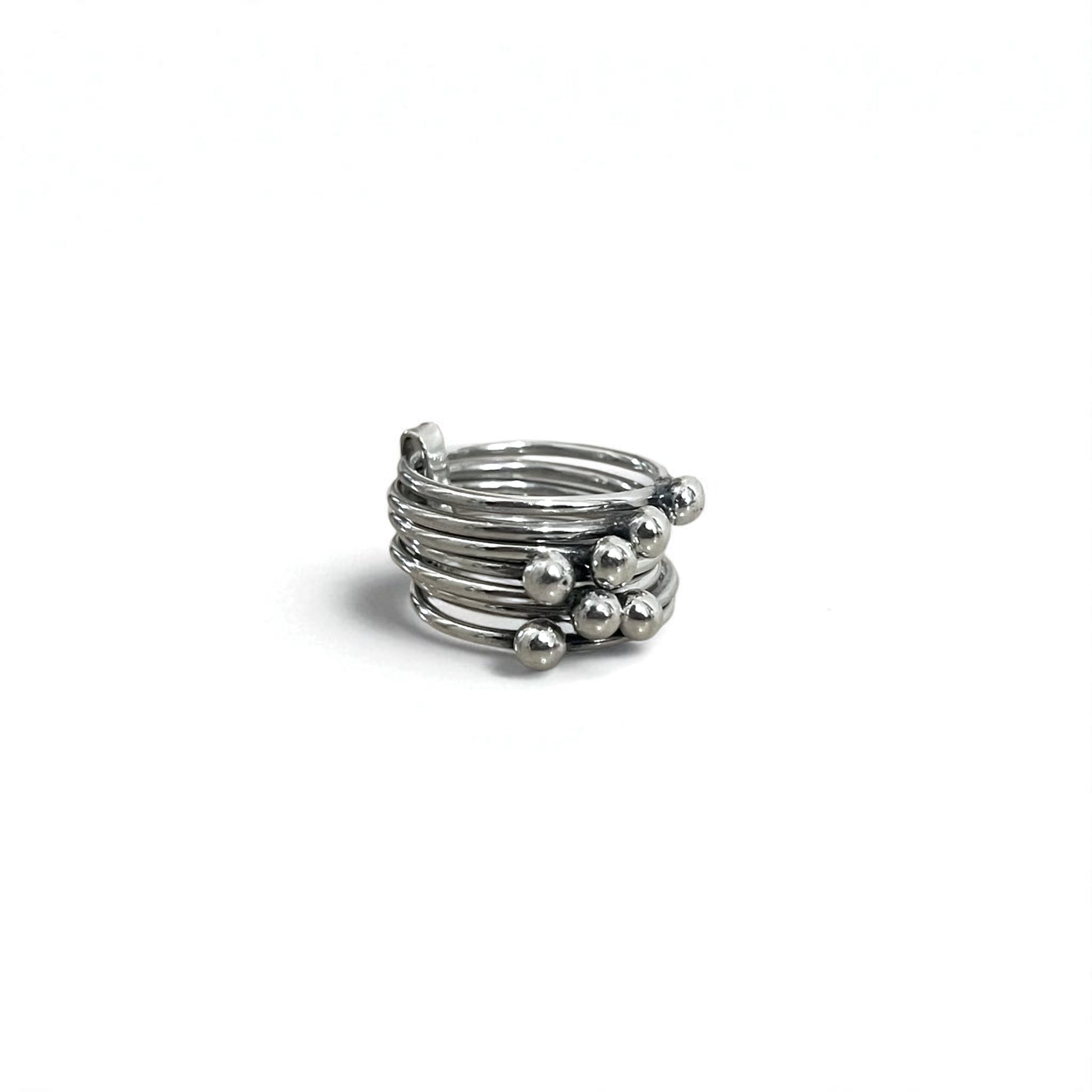 Vintage Mexican Jewelry メキシカンジュエリー 7連 リング シルバー 925 モダニスト