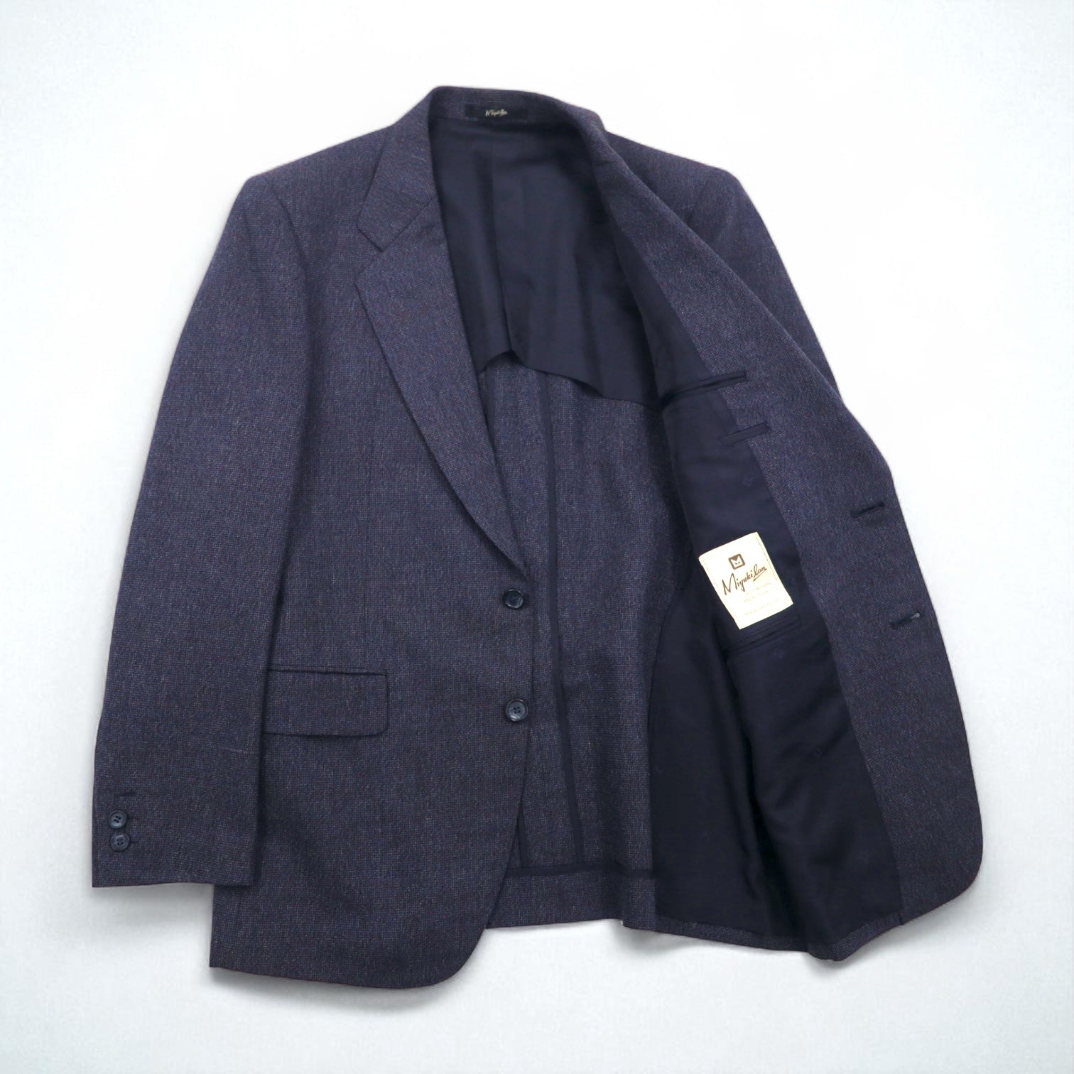 80s Japan Vintage 2-piece Suit Miyukilan 80年代 日本製 セットアップ スーツ M ネイビー ウール