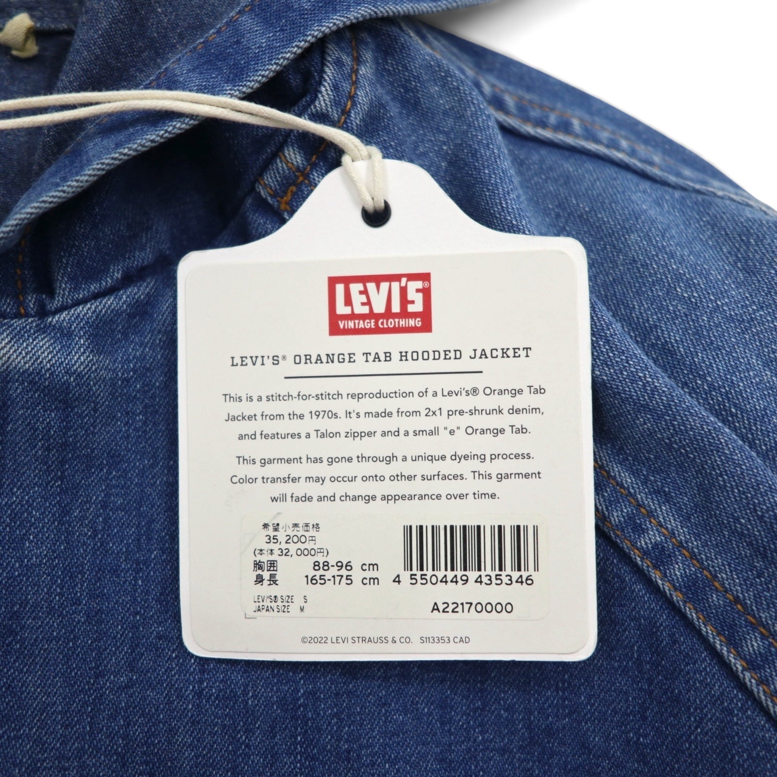 LEVI'S VINTAGE CLOTHING ( LVC ) デニム フーデッドジャケット ジップパーカー M オレンジタブ ORANGE TAB HOODED JACKET A2217-0000 未使用品 TALONジップ デカ五角形 ARCHIVES