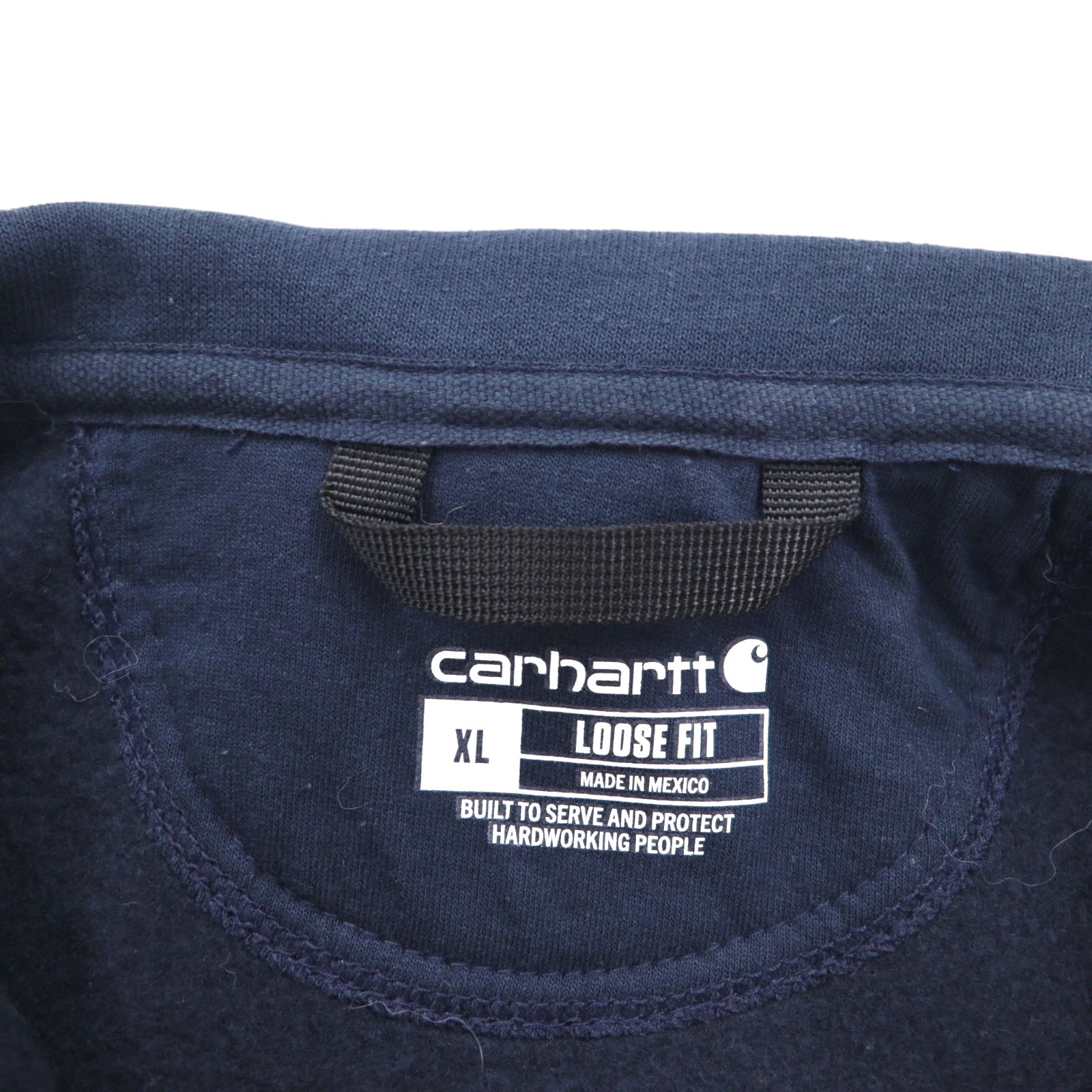 carhartt ハーフジップ スウェット トレーナー XL ネイビー Loose Fit Midweight フロントポケット Quarter-Zip Mock-Neck Sweatshirt 105294 US企業 刺繍