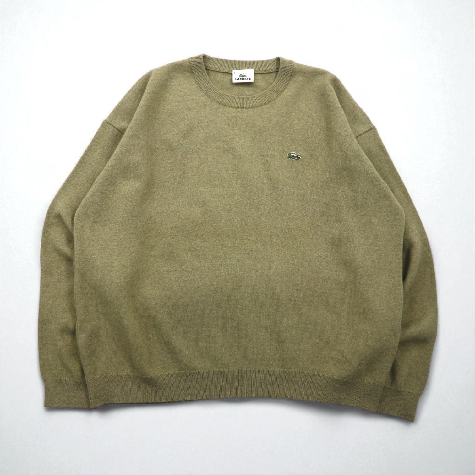 LACOSTE クルーネック セーター ニット L ベージュ ウール ワンポイントロゴ