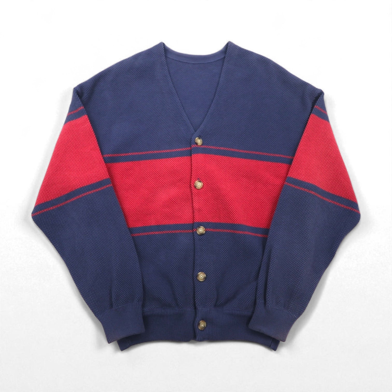 crepuscule ニット カーディガン 鹿の子 M ネイビー Border Moss Stitch V/N Cardigan ビッグサイズ 日本製 2001-002