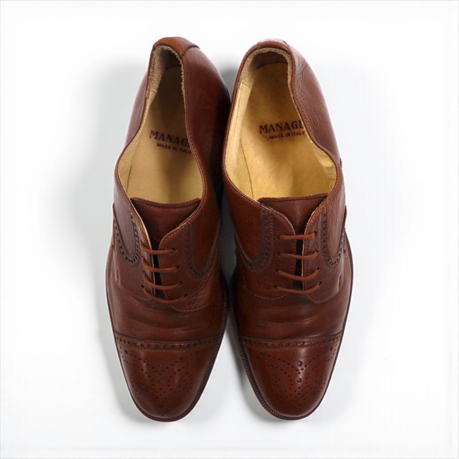 MANAGER イタリア製 フルブローグ ドレスシューズ 28cm レザー ブラウン メダリオン