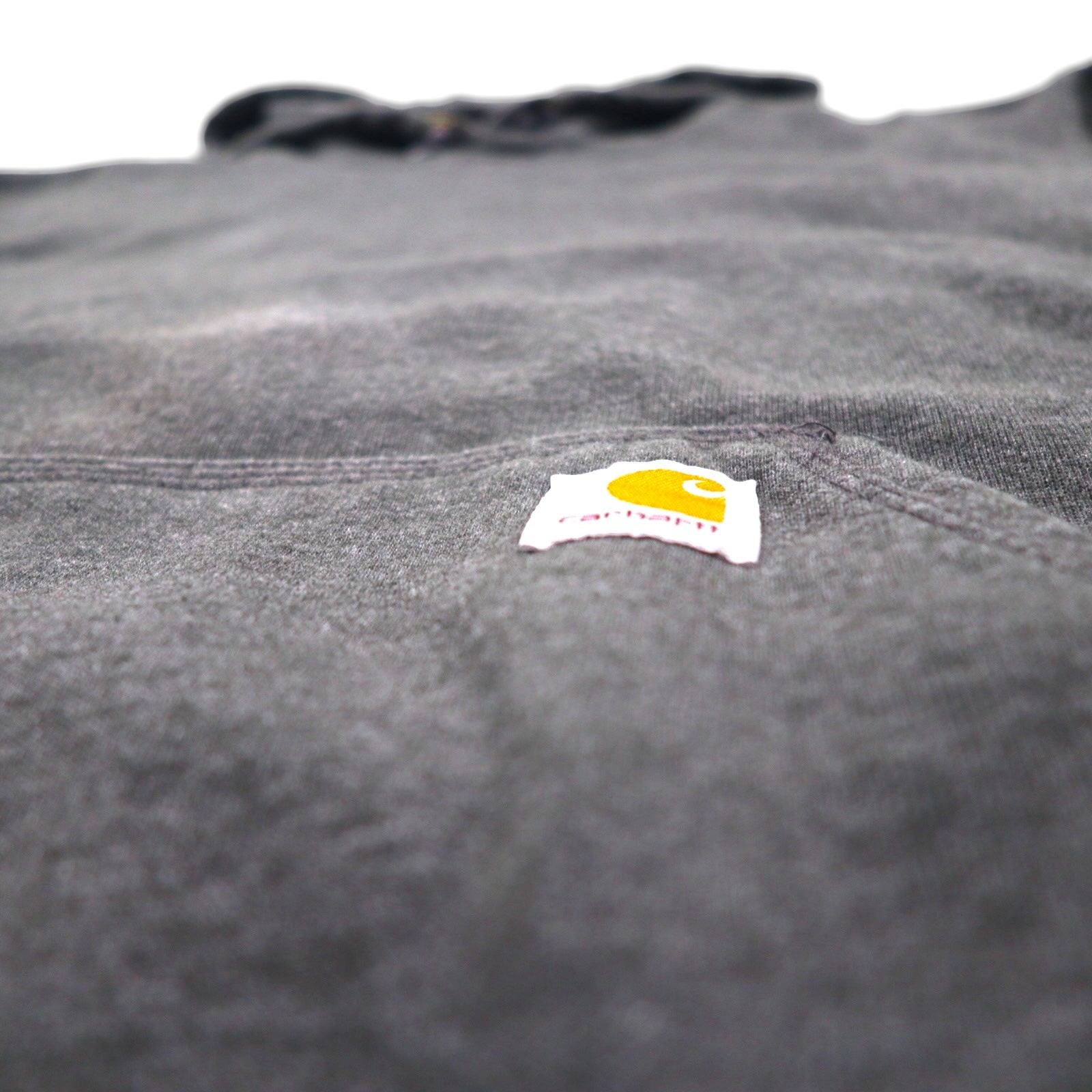 carhartt プルオーバー パーカー L グレー ORIGINAL FIT オリジナルフィット 袖 プリント フロントポケット