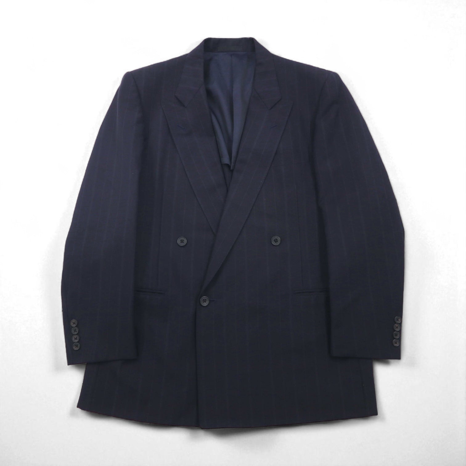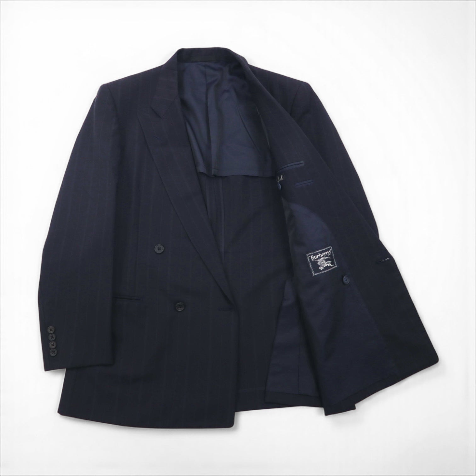 BURBERRY 日本製 ピークドラペル ダブル ブレザー セットアップ スーツ M ウール モヘア ストライプ WOOL&MOHAIR