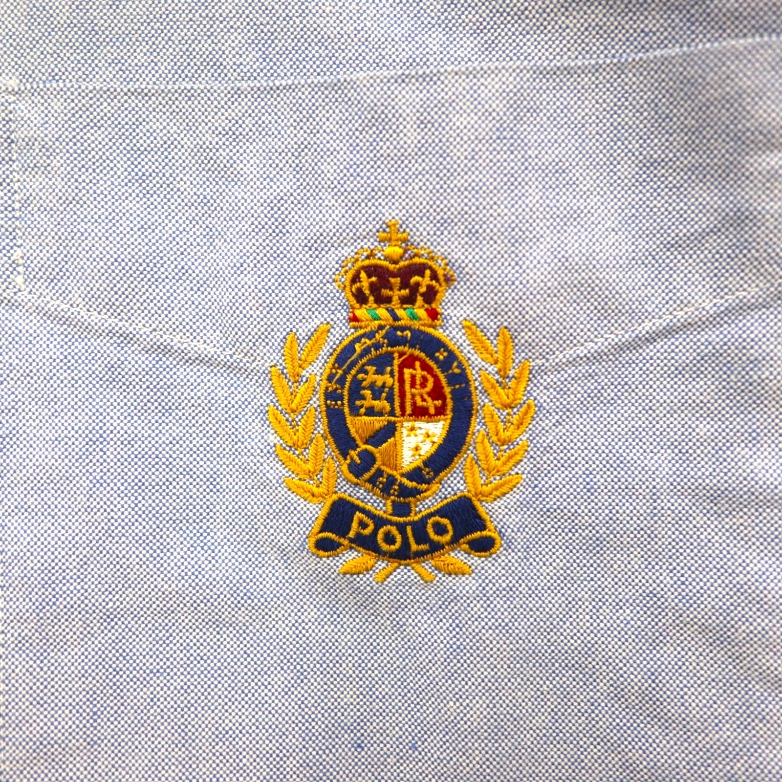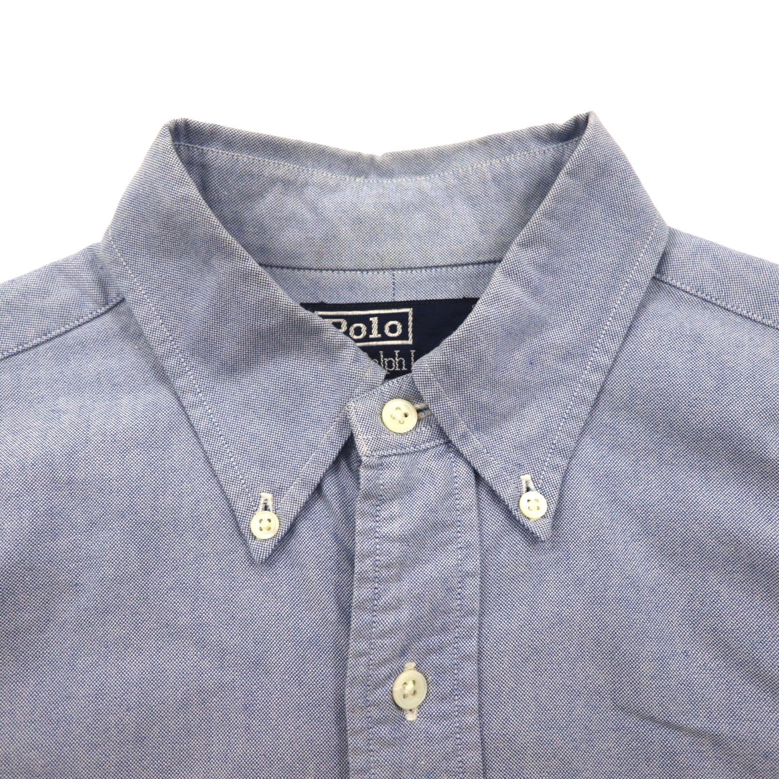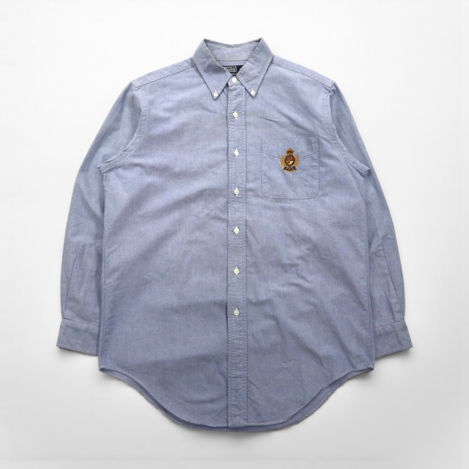 Polo Ralph Lauren 90年代 オックスフォード ボタンダウン シャツ M ブルー 胸ポケット エンブレム
