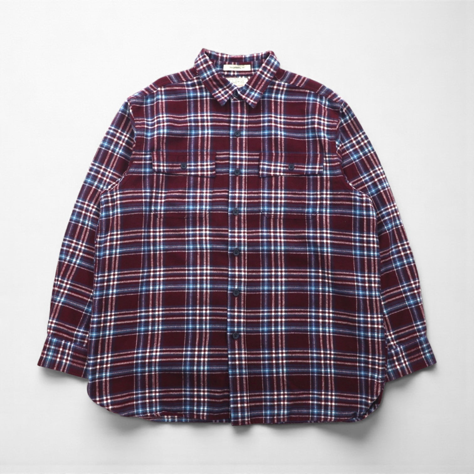 L.L.Bean シャミークロス フランネルシャツ L ボルドー TRADITIONAL FIT チェック ダブルポケット 277981