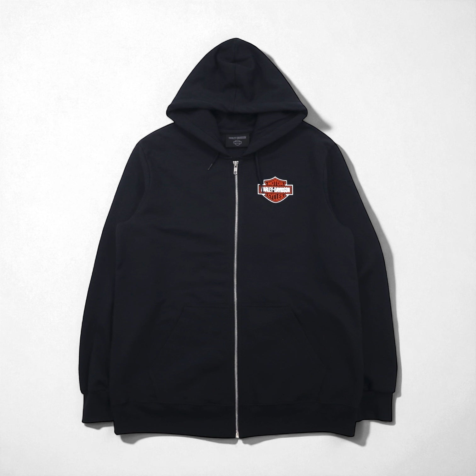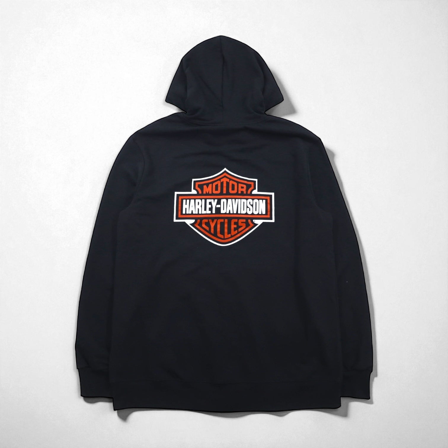 HARLEY DAVIDSON ジップパーカー XL ブラック コットン 両面プリント