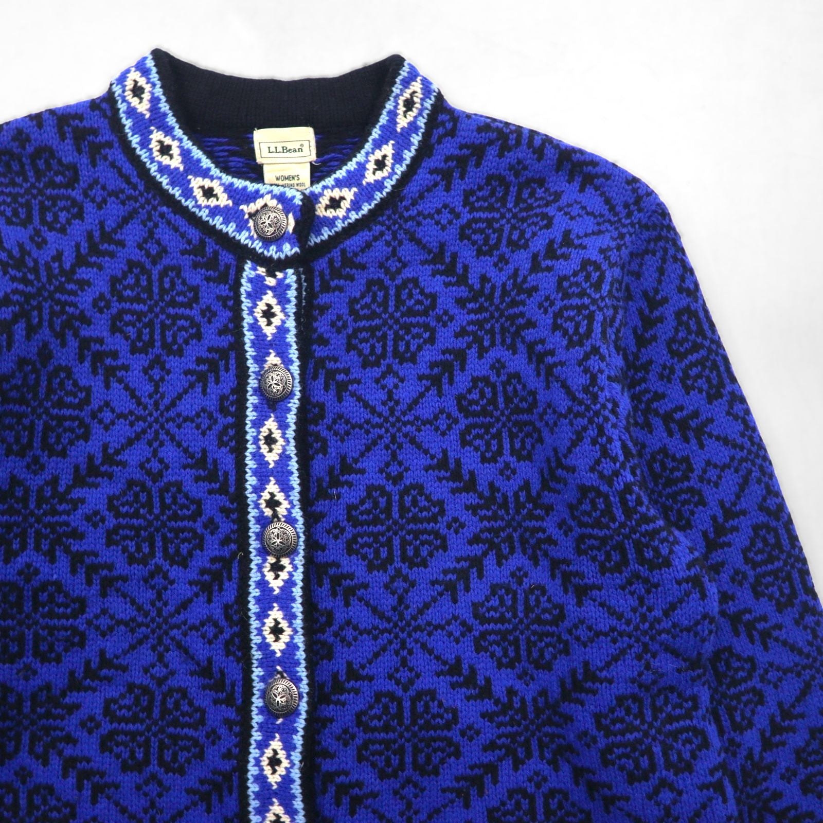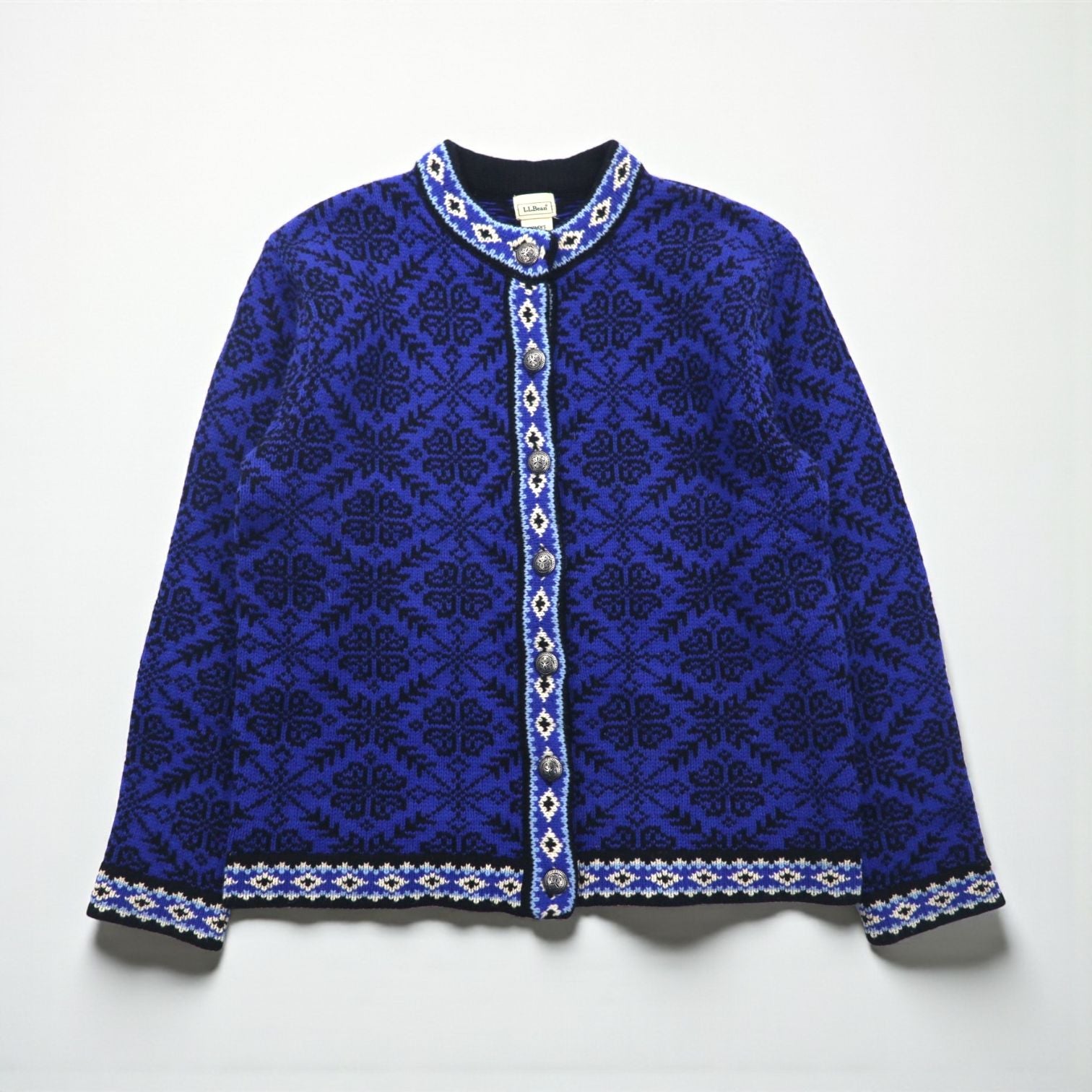 L.L.Bean 90年代 ノルディック柄 チロリアン ニット カーディガン M メタルボタン コンチョ UF39 オーストラリア製