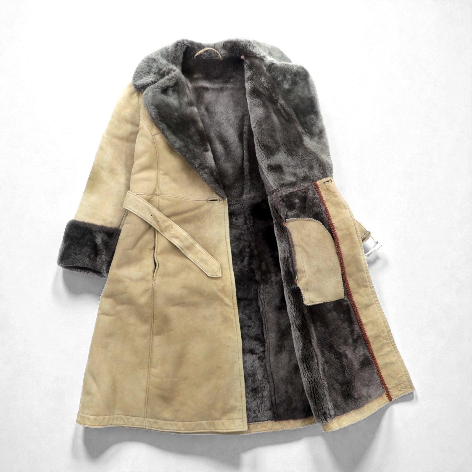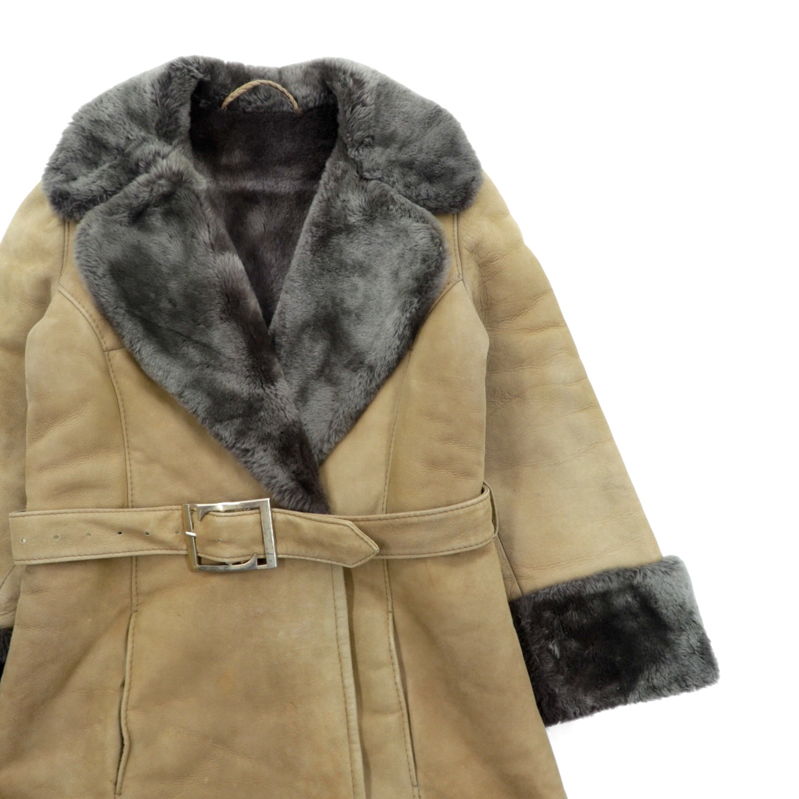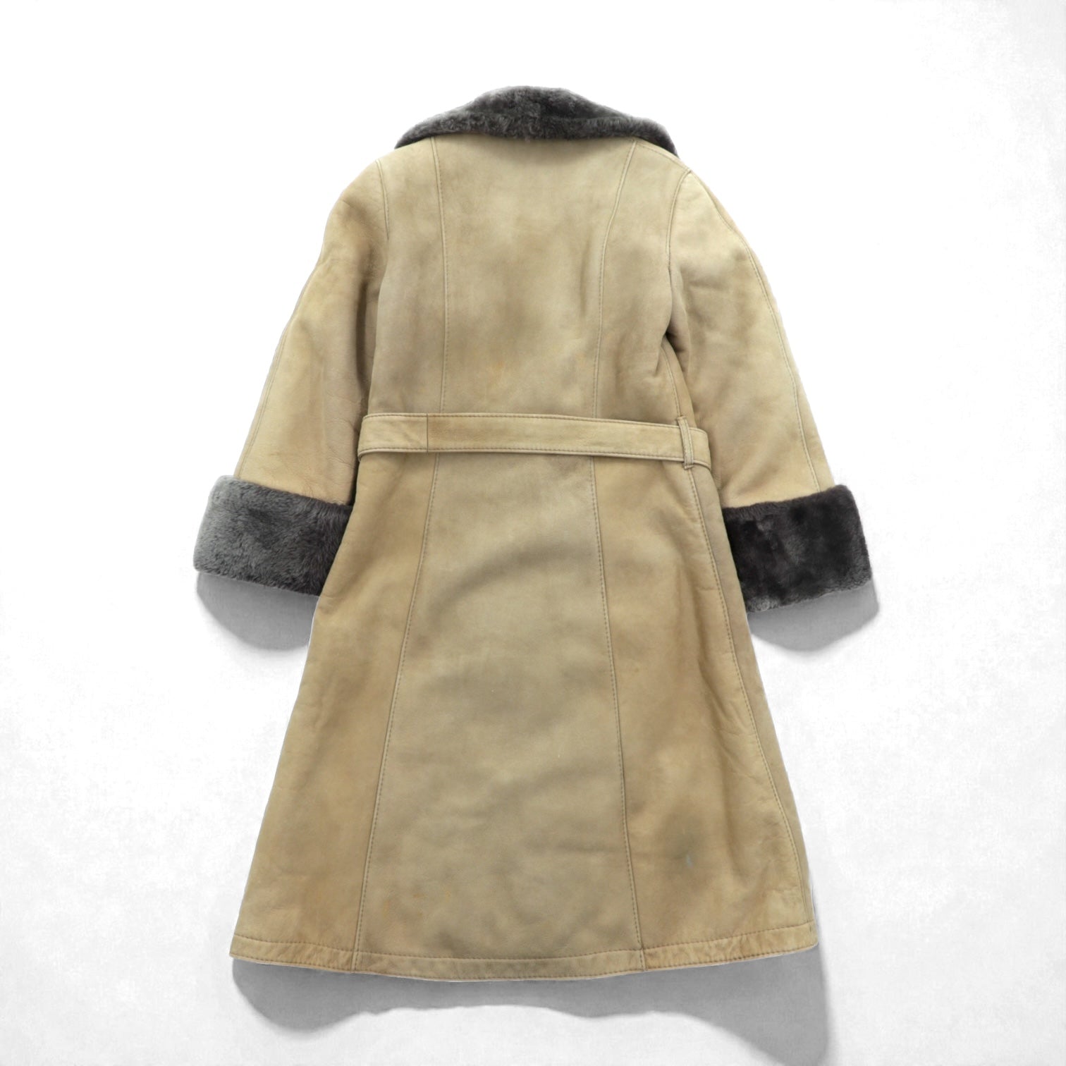 LOEWE ムートンコート シアリング ロングコート XL ファー襟 ベルト付き スペイン製 ヴィンテージ