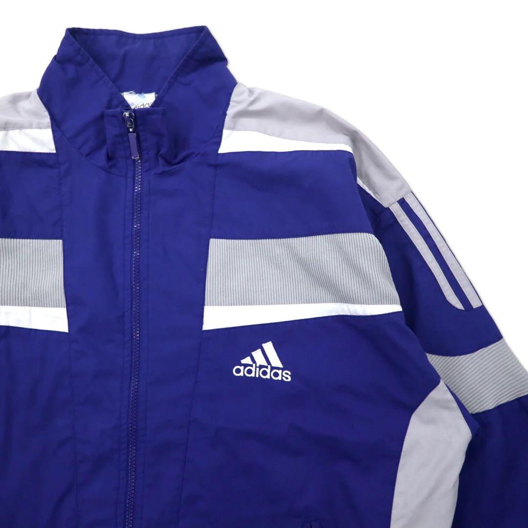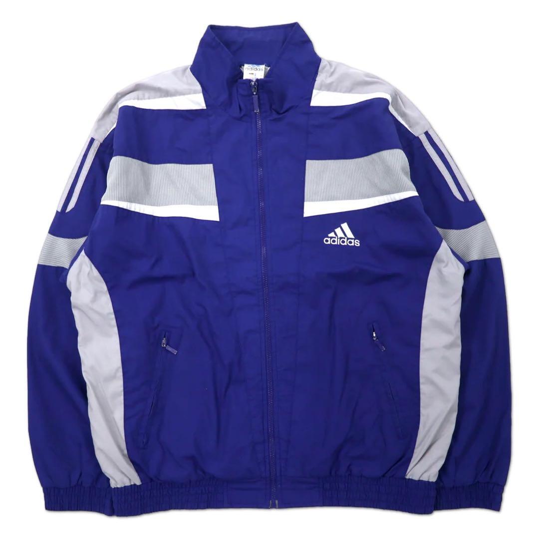 adidas 90年代 トラックジャケット ジャージ 180 ブルー ポリエステル 3ストライプ ワンポイントロゴ刺繍 ビッグサイズ