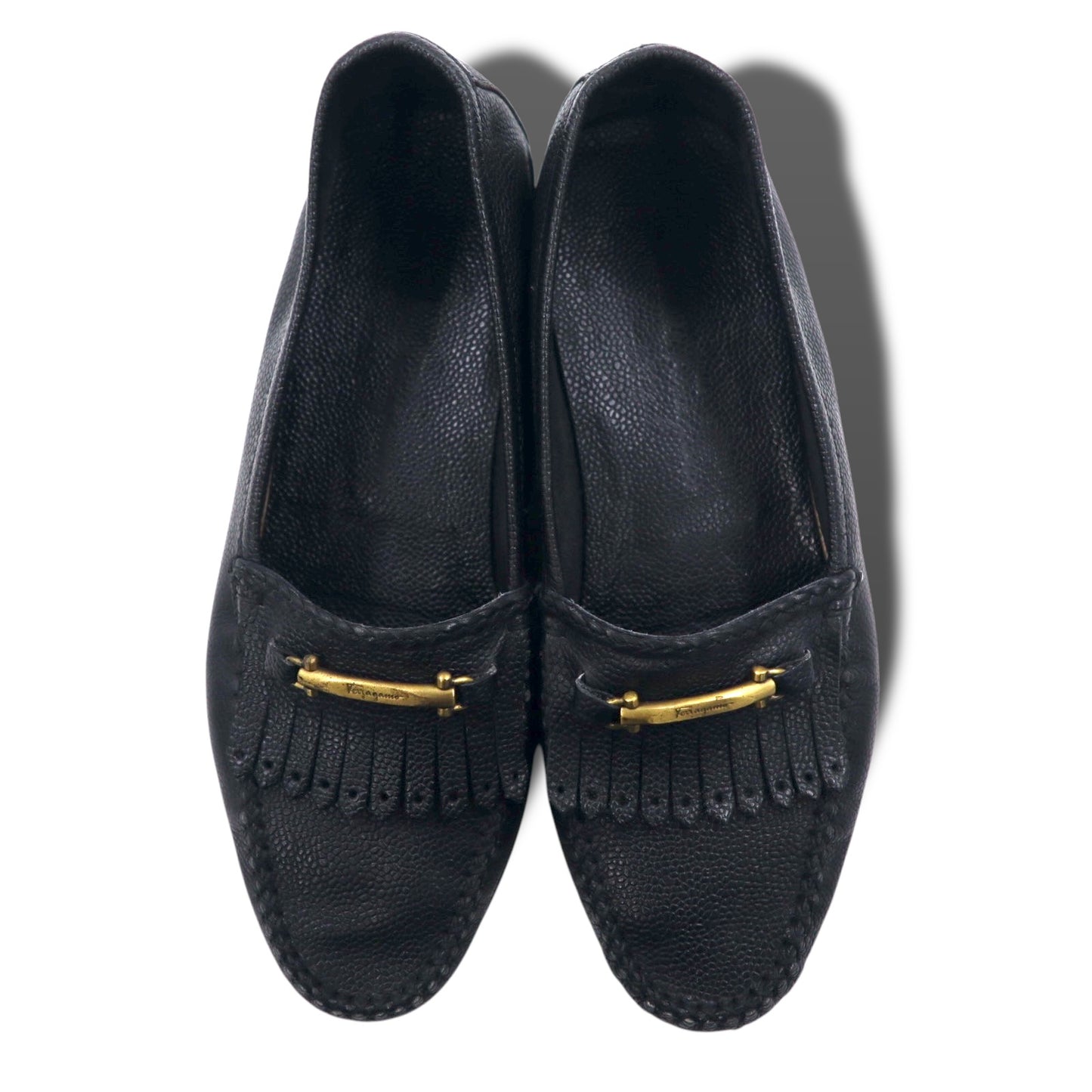Salvatore Ferragamo イタリア製 ゴールド ビット フリンジ ローファー 25.5cm ブラック レザー 9097
