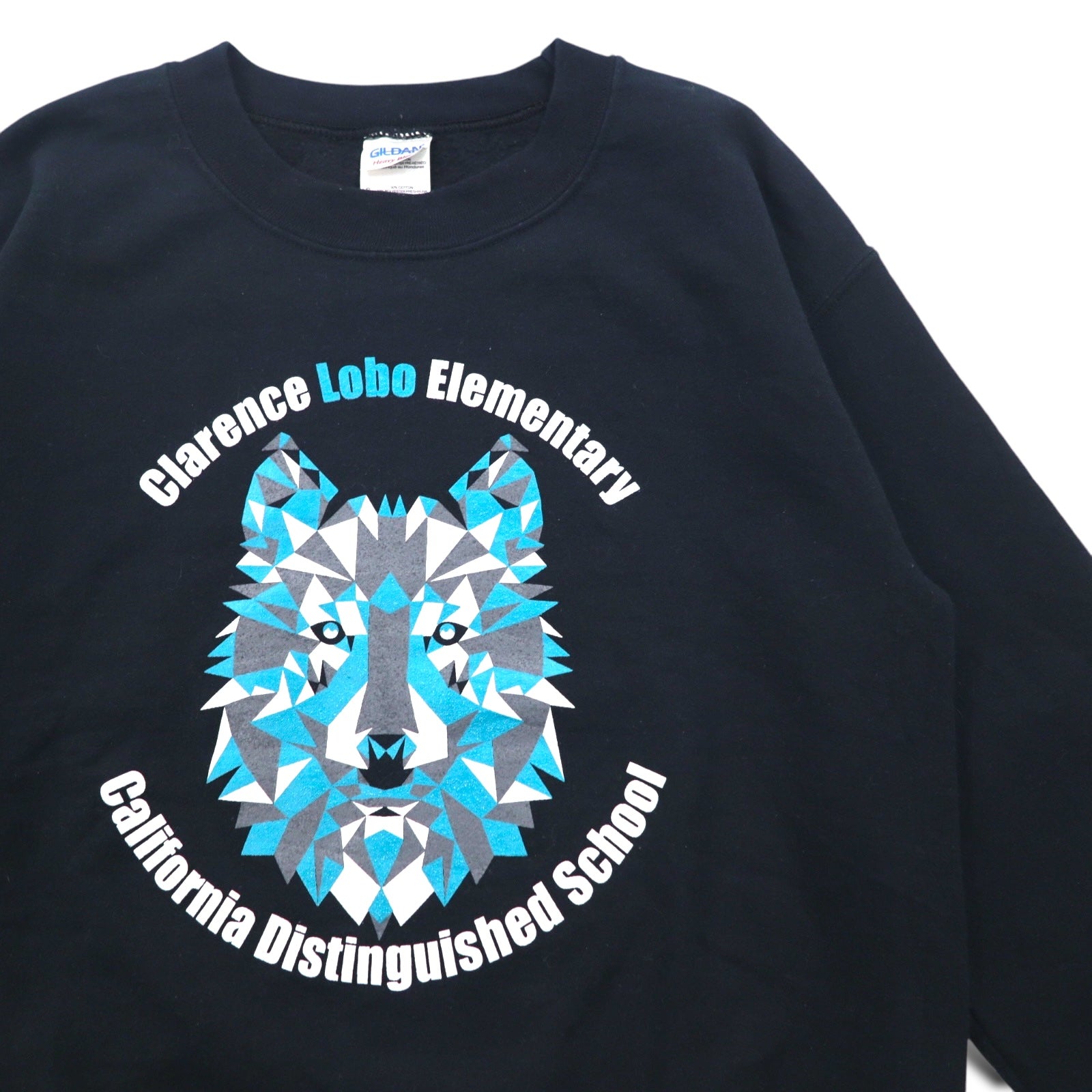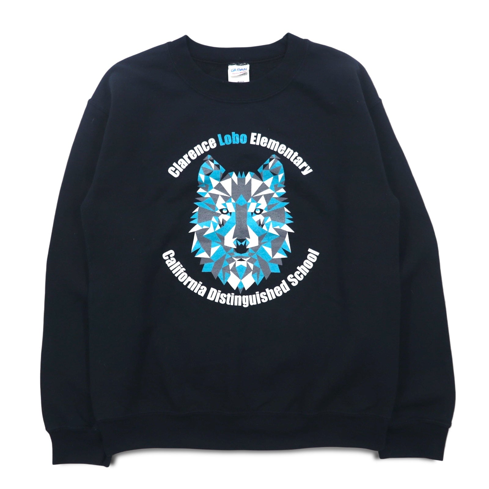 GILDAN クルーネック スウェット S ブラック 裏起毛 アニマル アート プリント Clarence Lobo Elementary