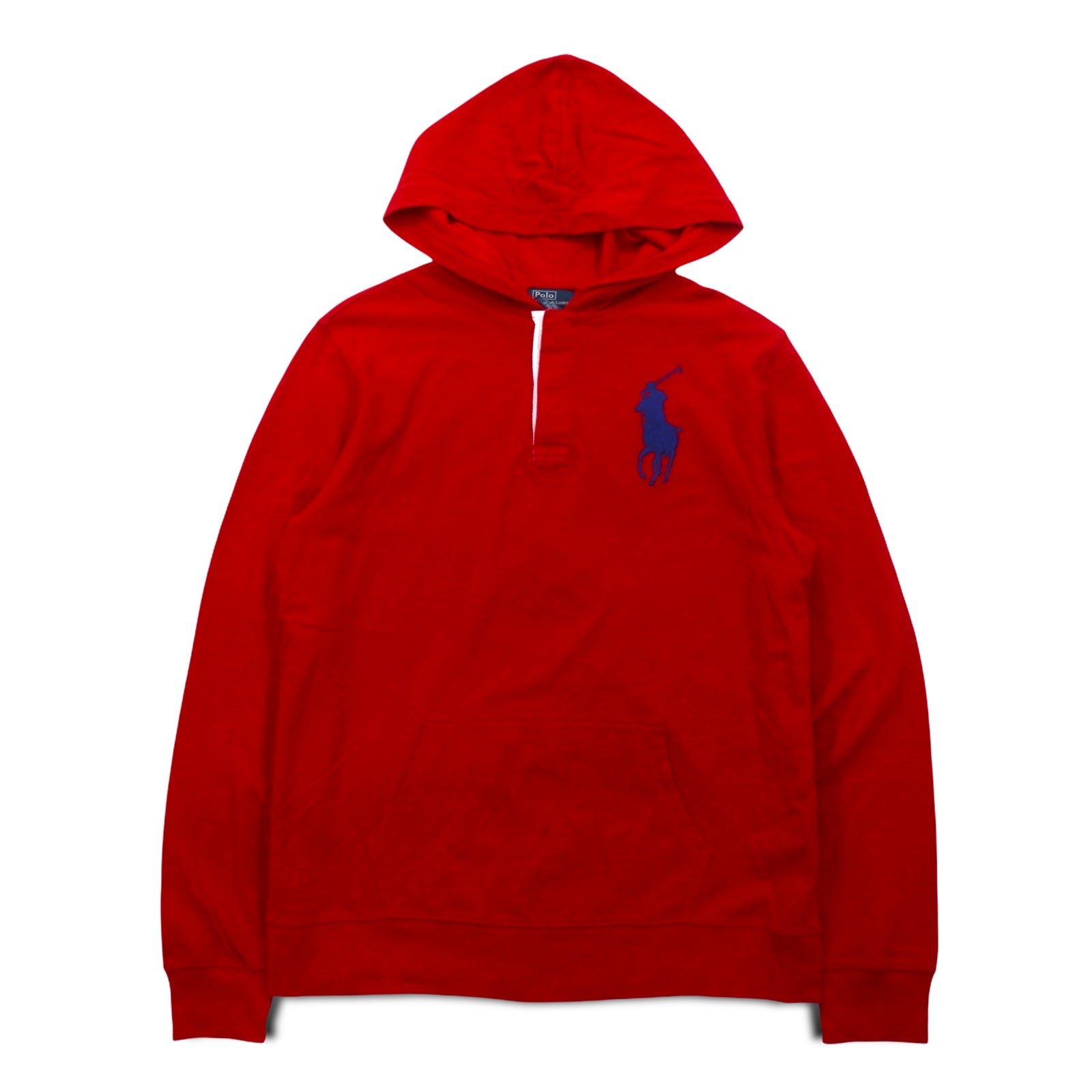 Polo by Ralph Lauren ビッグポニー刺繍 ハーフボタン パーカー S レッド コットン 鹿の子