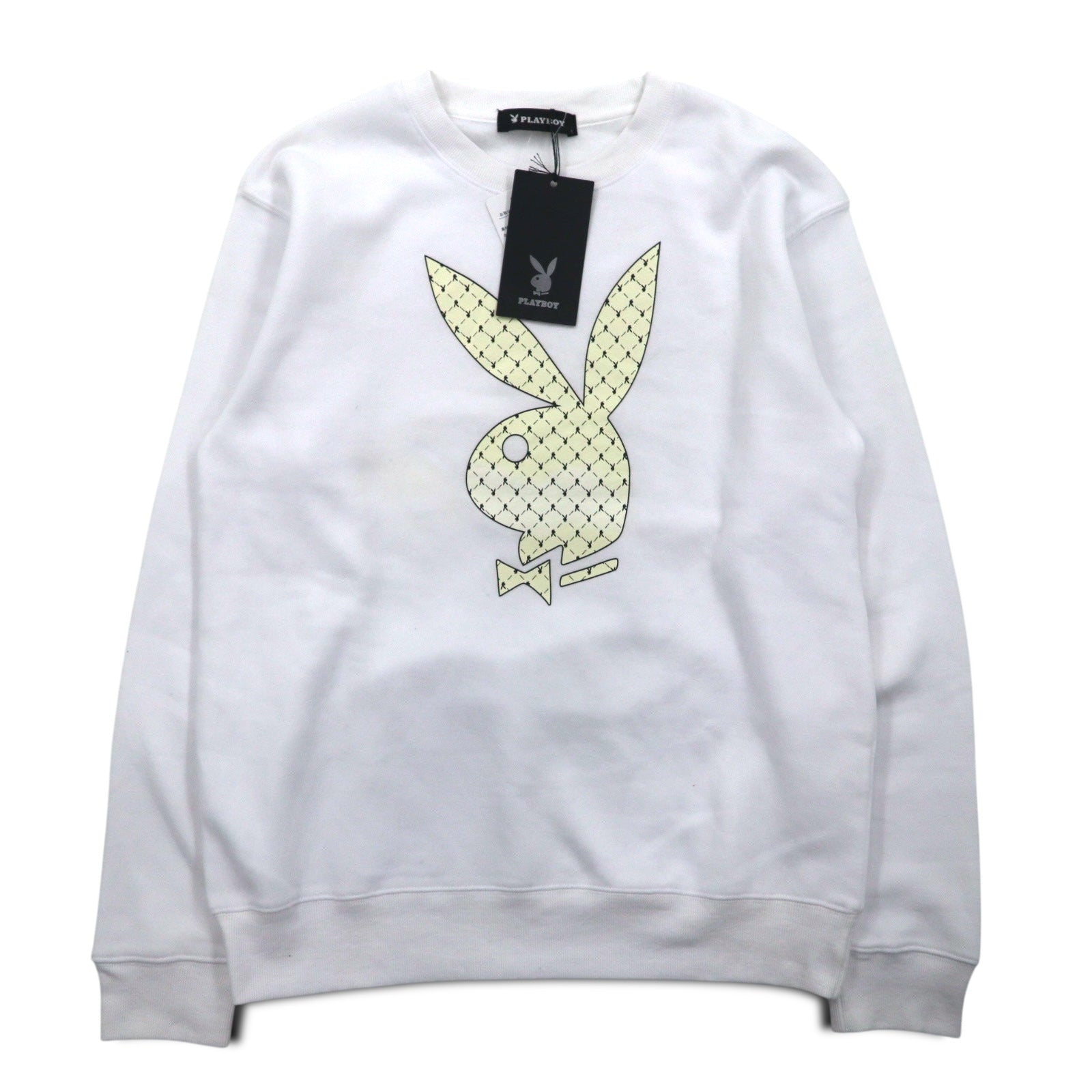 PLAY BOY ロゴプリント クルーネック スウェット L ホワイト コットン 裏起毛 未使用品
