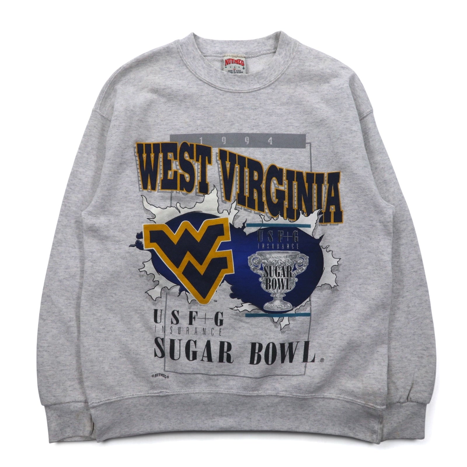 USA製 90年代 NUTMEG MILLS カレッジプリント スウェット M グレー 裏起毛 WEST VIRGINIA