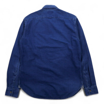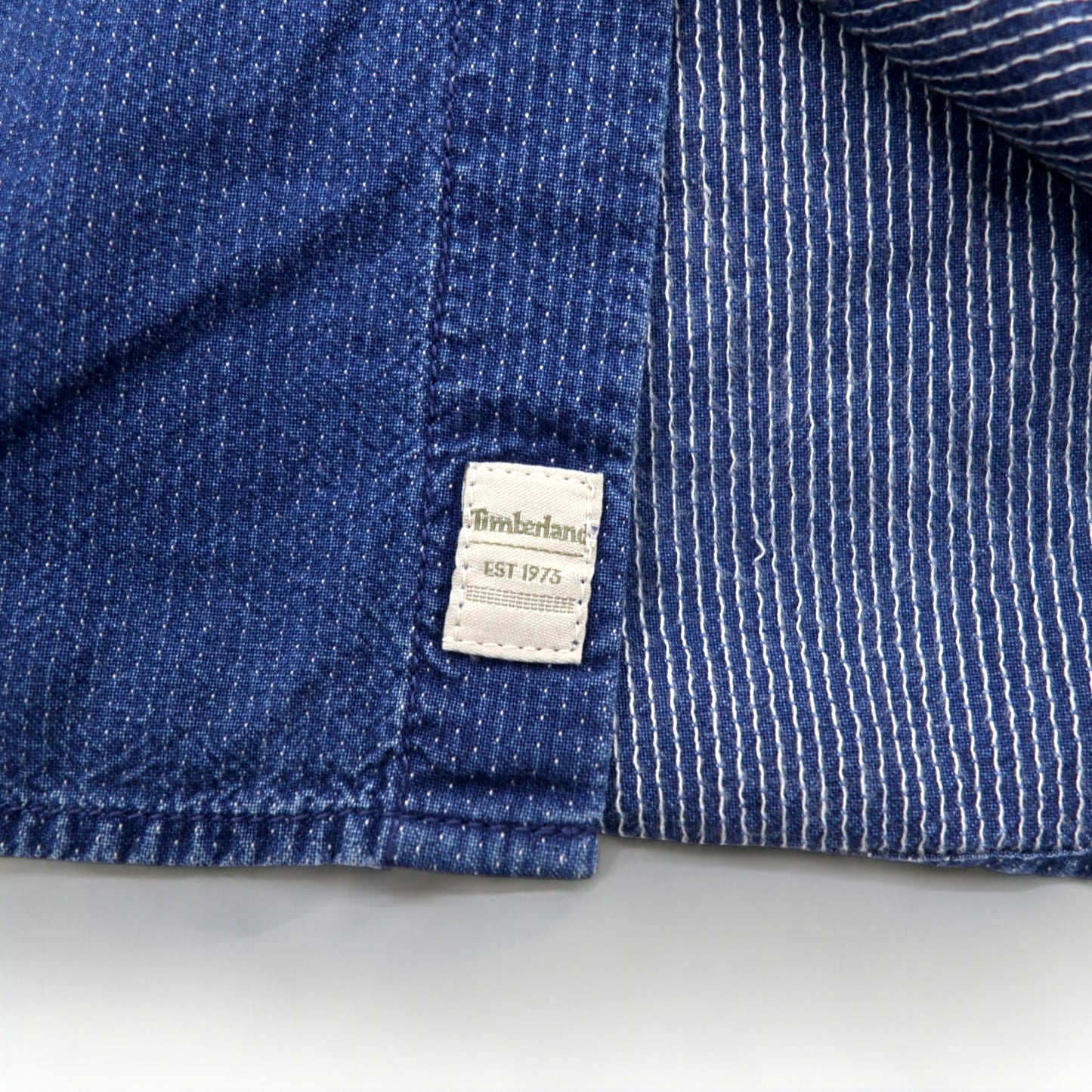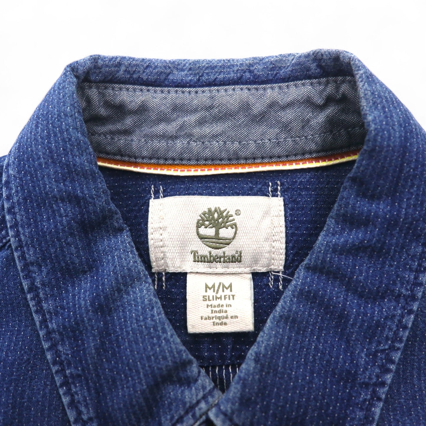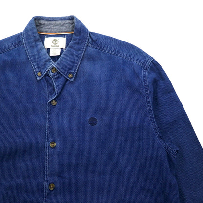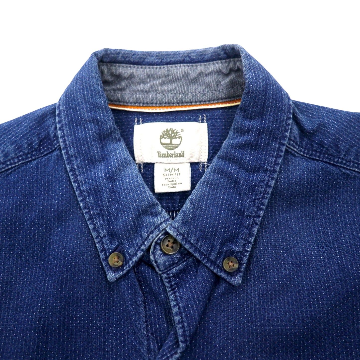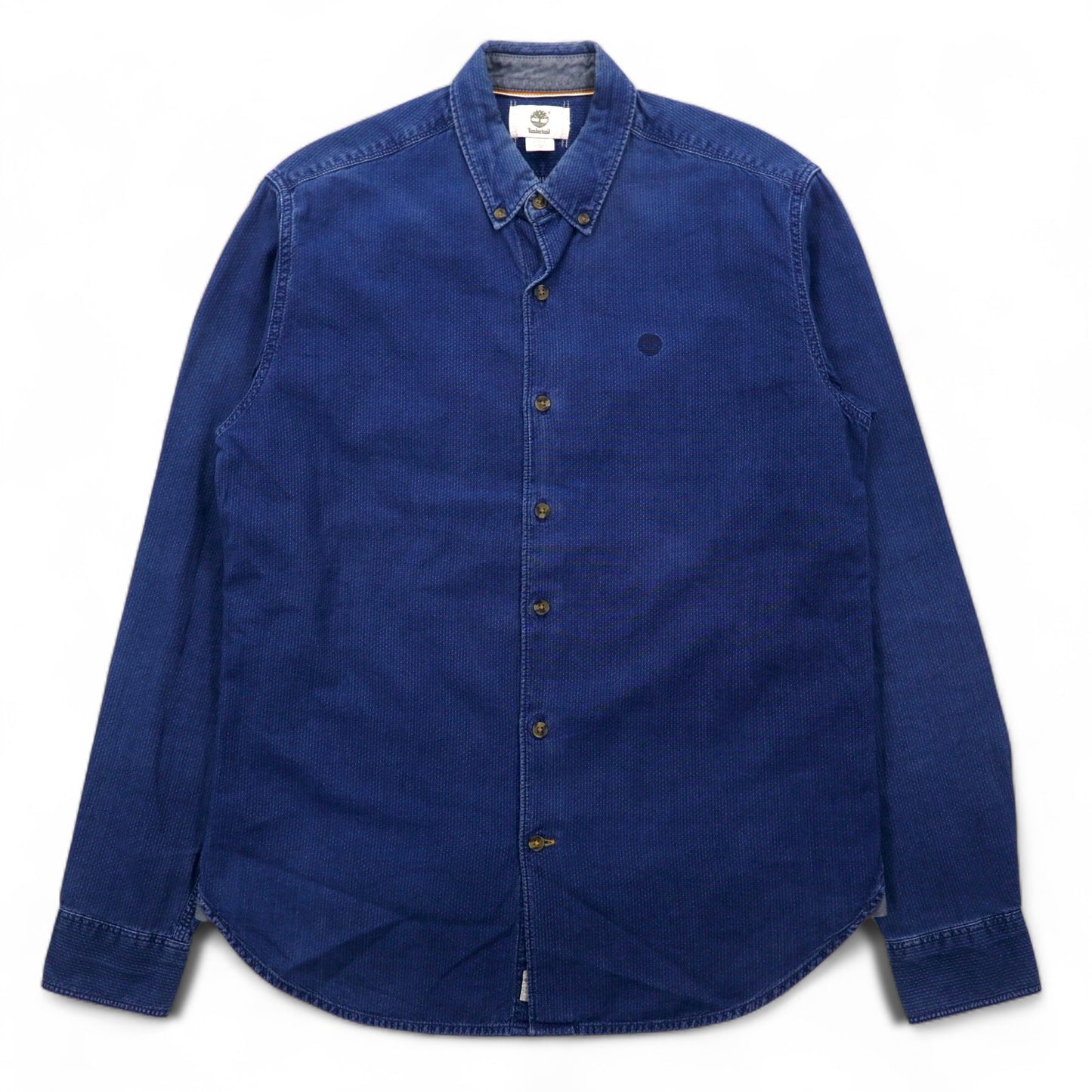 TIMBERLAND デニム ボタンダウンシャツ M インディゴ ブルー ワンポイントロゴ刺繍