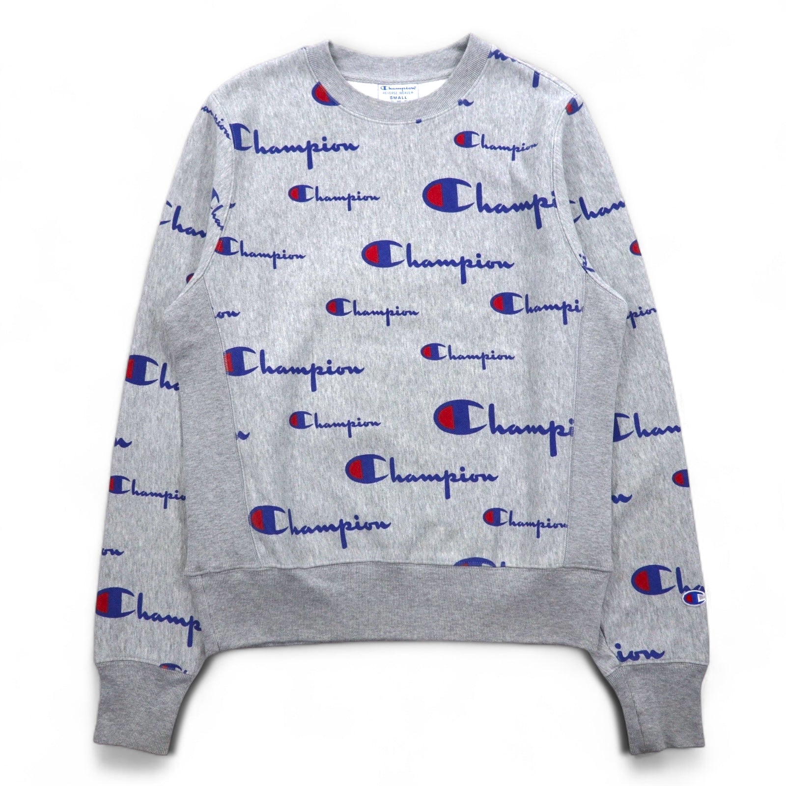 Champion リバースウィーブ REVERSE WEAVE スウェット L グレー 総柄 スクリプトロゴ 青単タグ 復刻