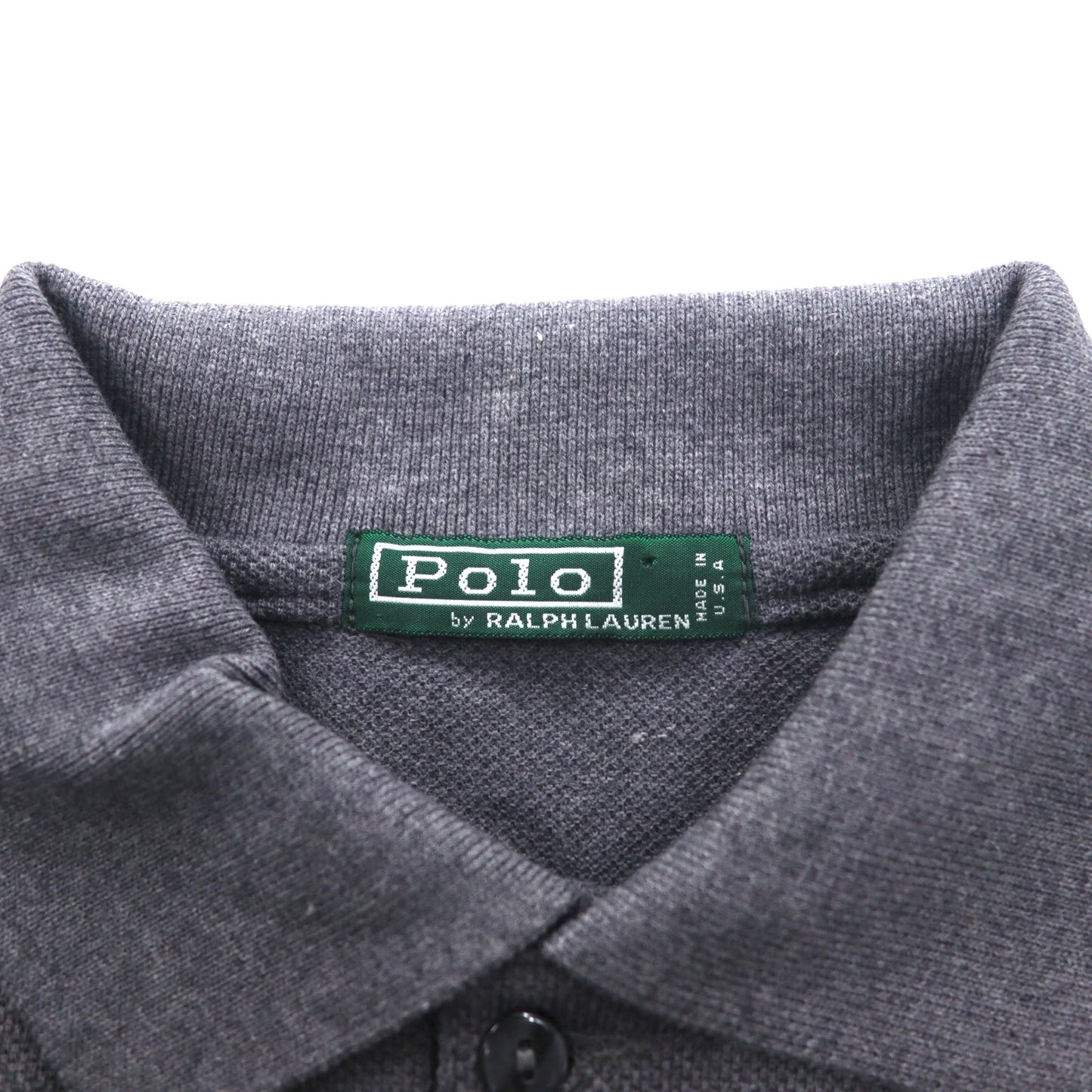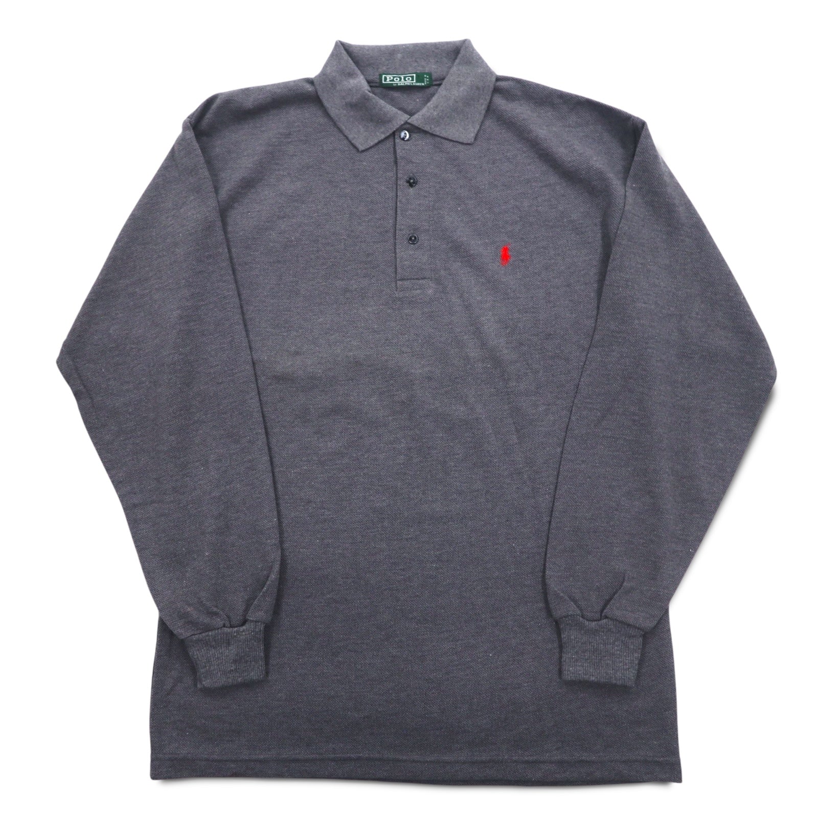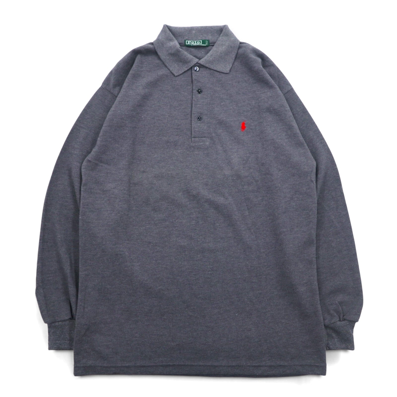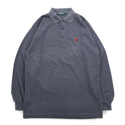 Polo by Ralph Lauren USA製 長袖ポロシャツ XL グレー コットン 鹿の子 スモールポニー刺繍