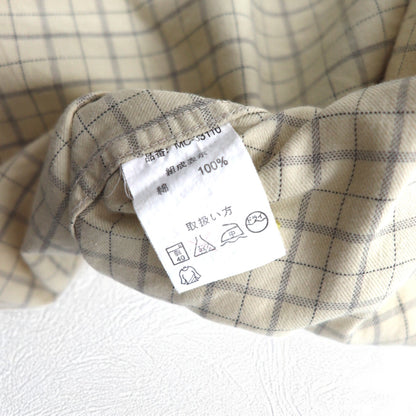 MCM ボタンダウンシャツ XL ベージュ チェック コットン 胸ポケット ワンポイントロゴ刺繍