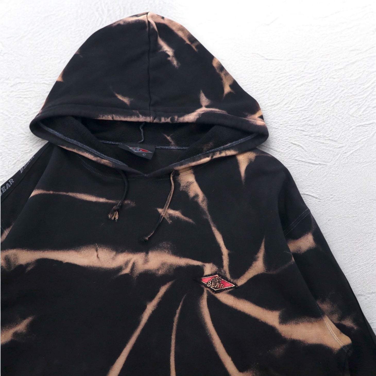BEAR USA 90年代 タイダイ プルオーバーパーカー L ブラック コットン ブリーチ加工