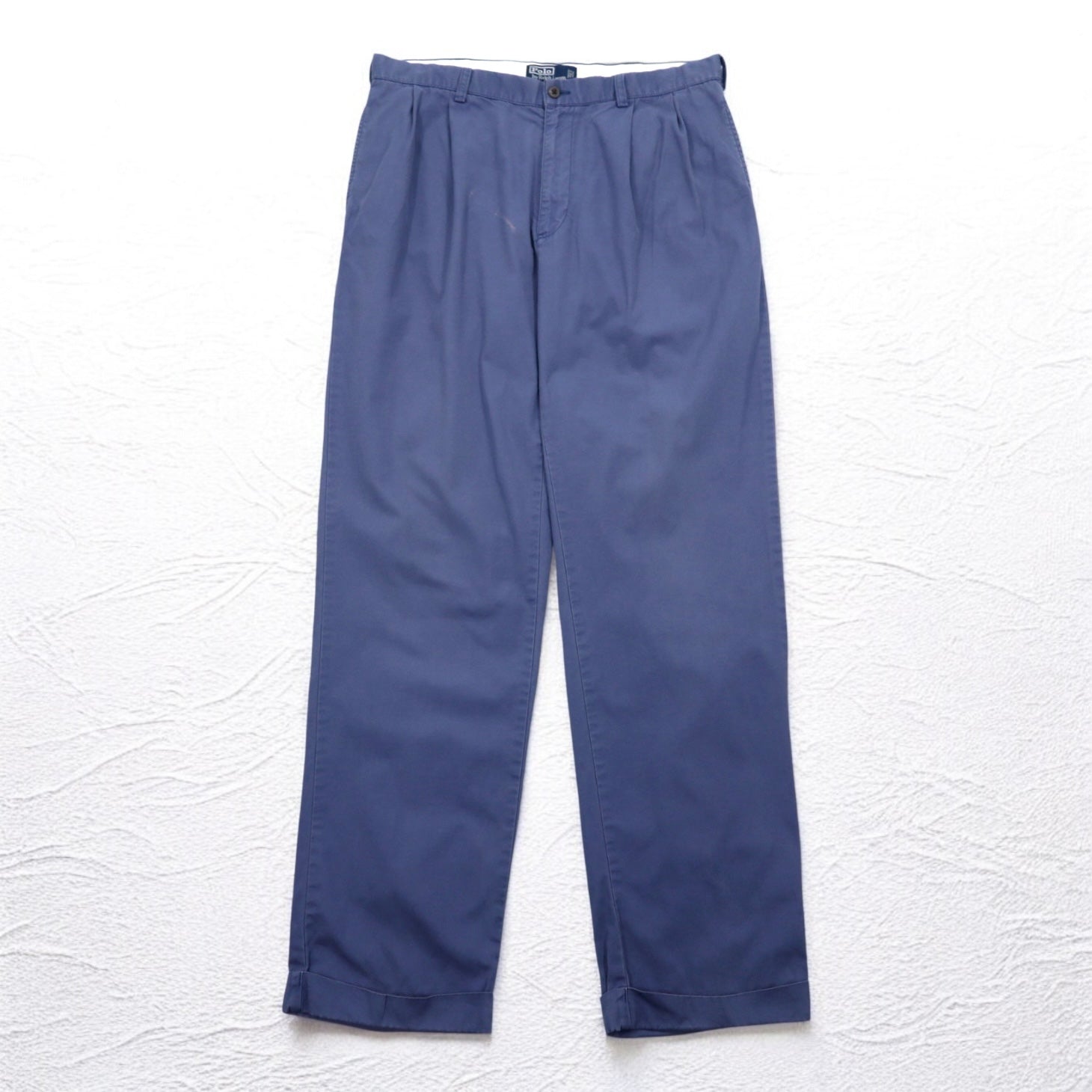 Polo by Ralph Lauren 90年代 タック ワイド チノパンツ L ブルー コットン HAMMOND PANT