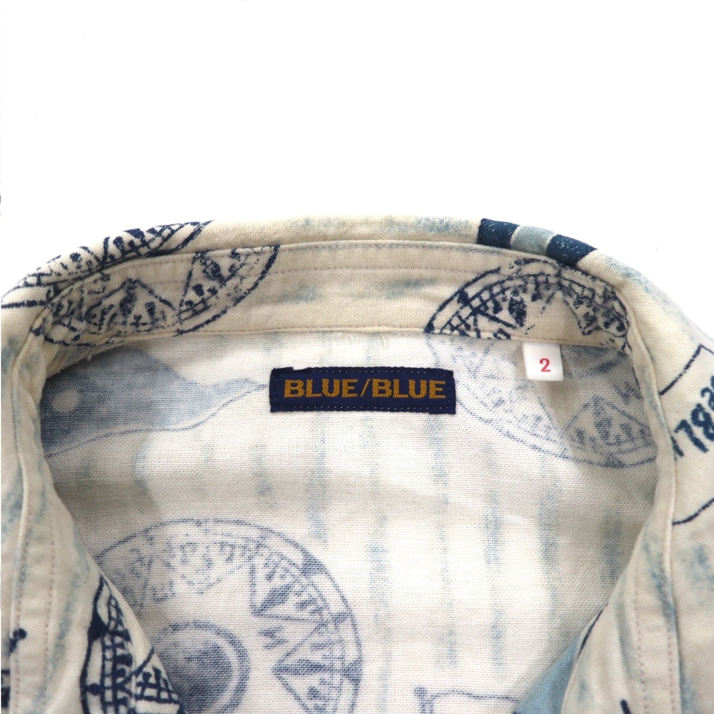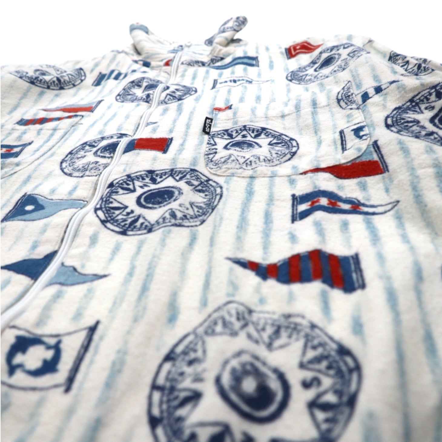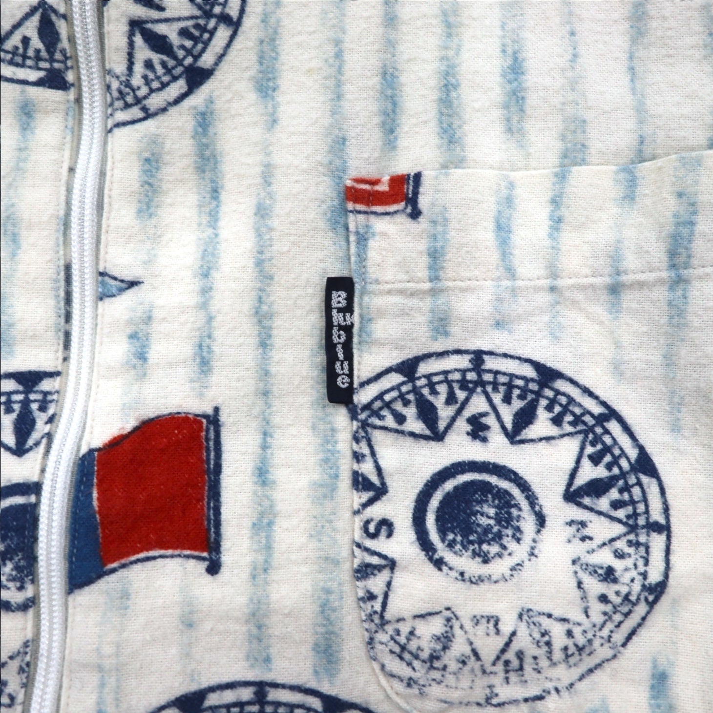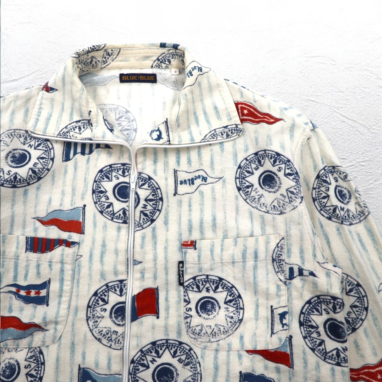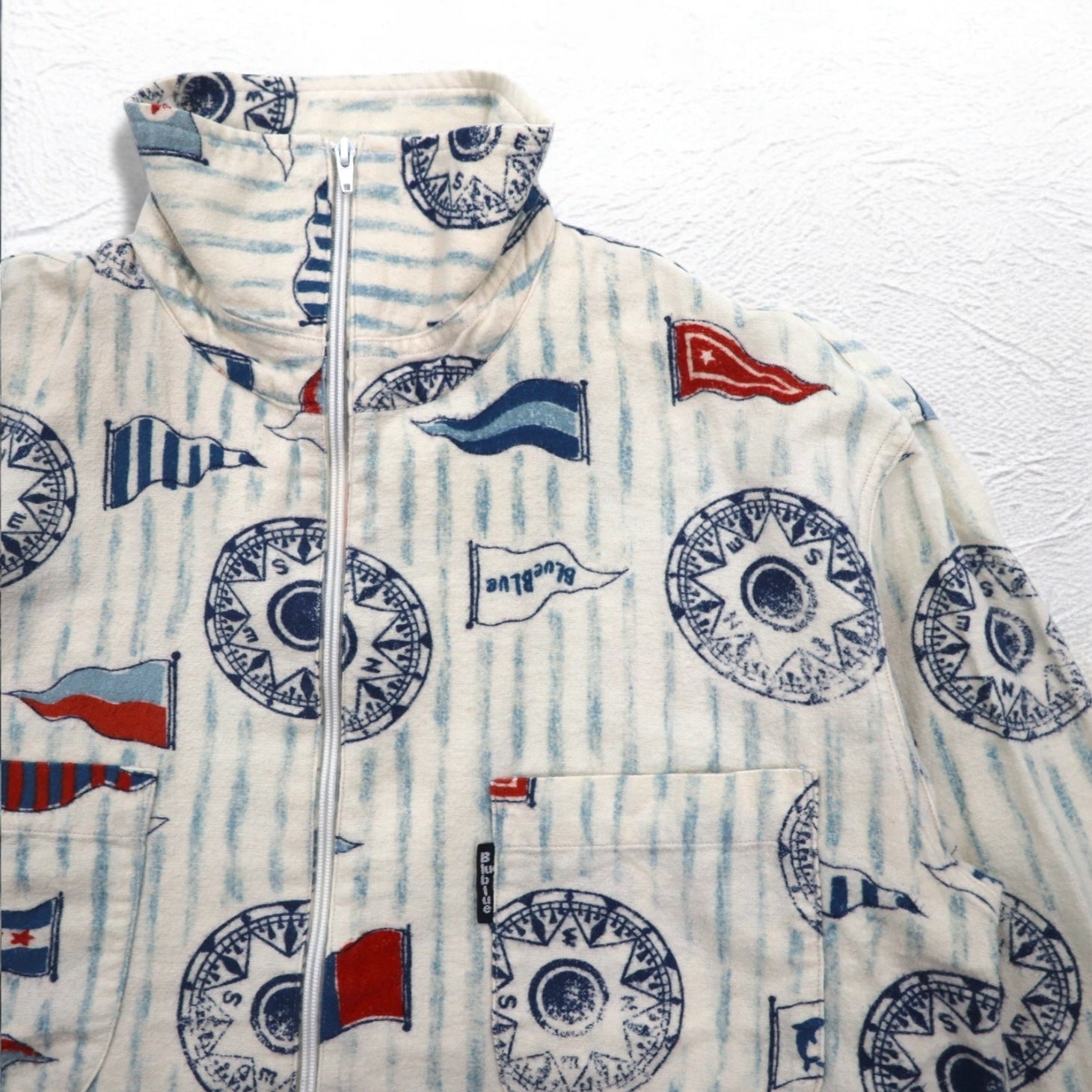 BLUE BLUE スタンドカラー ジップアップジャケット M ホワイト 総柄 フラッグ マリンデザイン 日本製