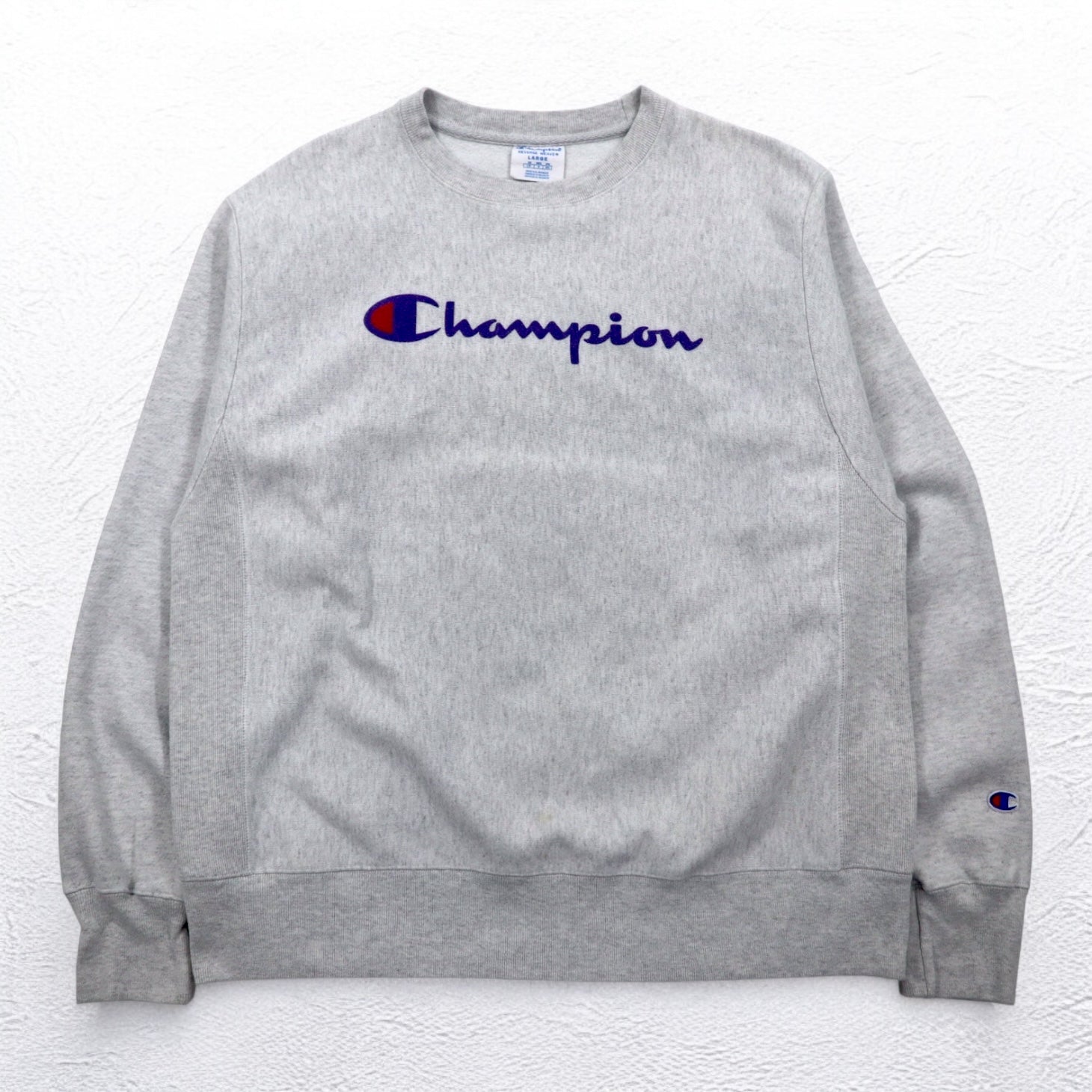 Champion リバースウィーブ REVERSE WEAVE スウェット 2XL グレー 染み込みプリント 青単タグ 復刻 エルサルバドル製