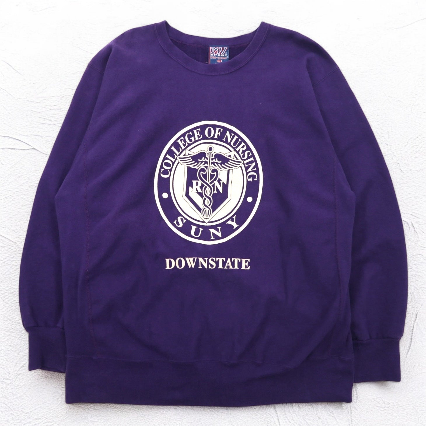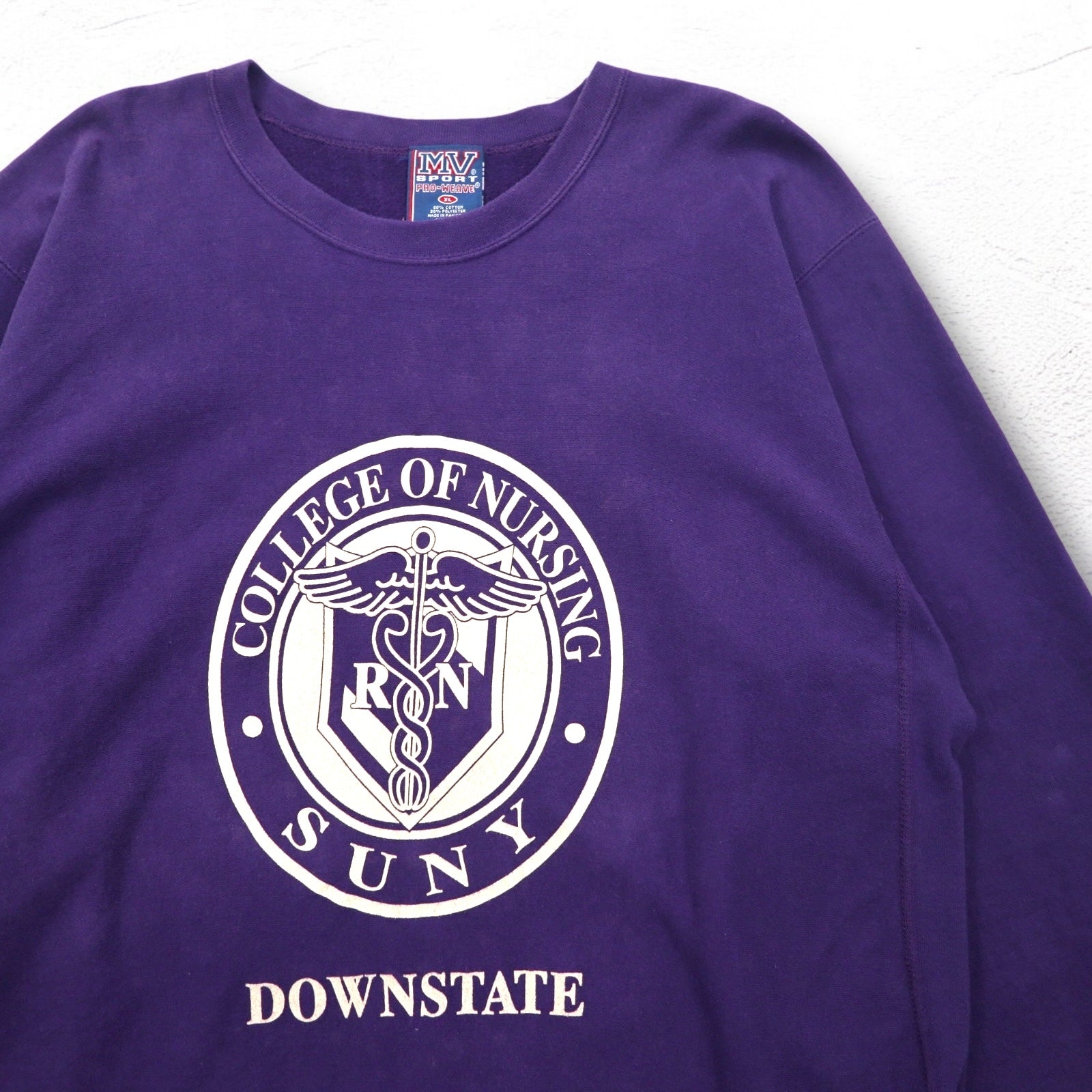 MV SPORT 90年代 リバースウィーブ PRO-WEAVE カレッジプリント スウェット XL パープル 裏起毛 DOWNSTATE