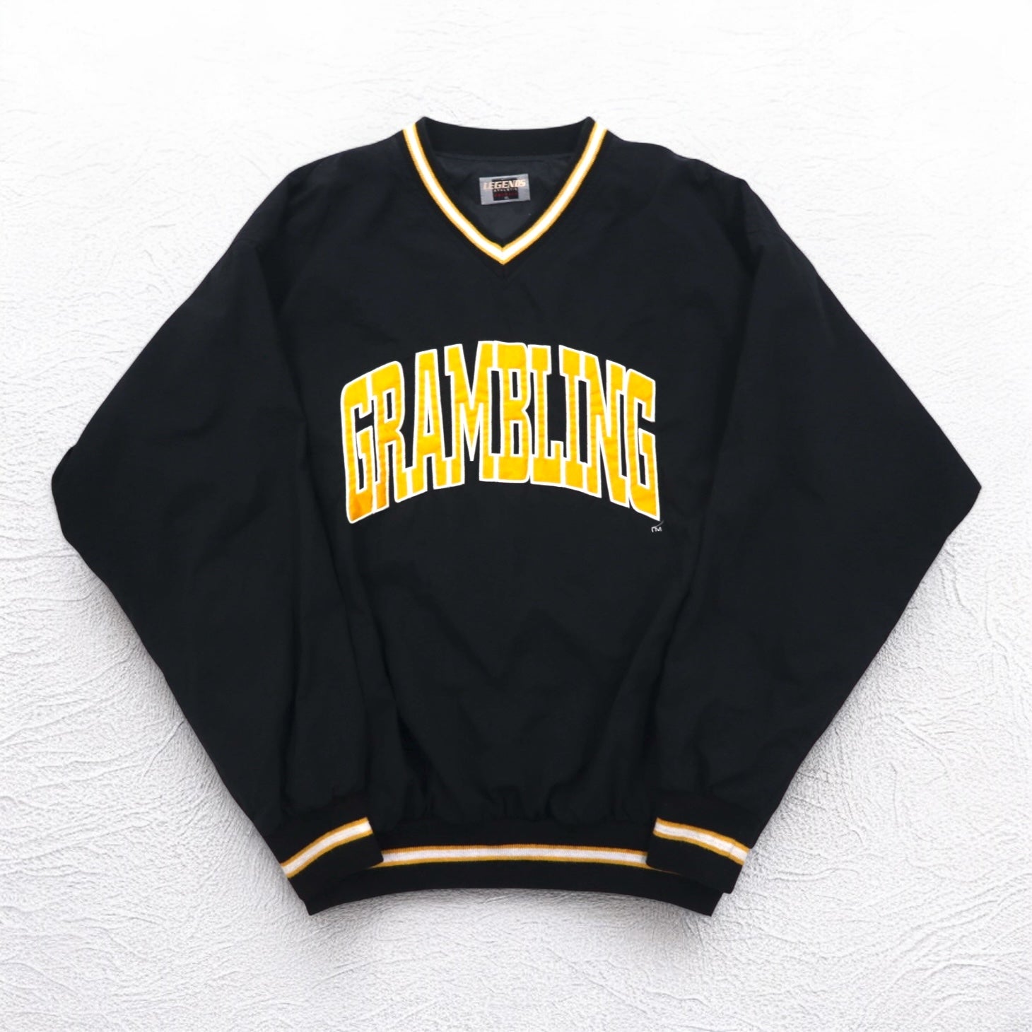 LEGENDS ATHLETIC USA製 90年代 リブライン ピステ プルオーバー ナイロンジャケット XL ブラック カレッジ GRAMBLING アーチロゴ