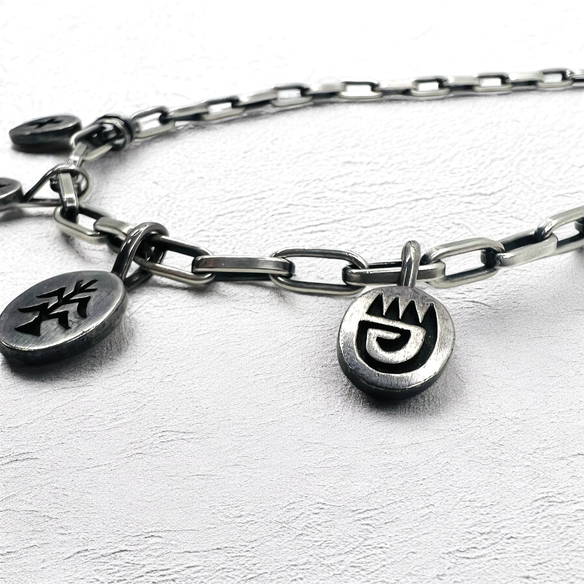 NAVAJO インディアンジュエリー Timothy Lee ネックレス ナバホ族 シルバー リンク チェーン Sterling スタンプワーク トライバル