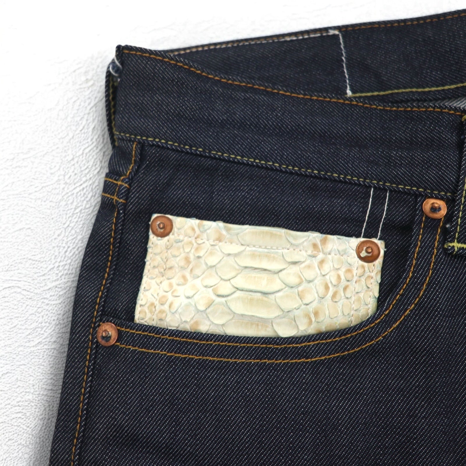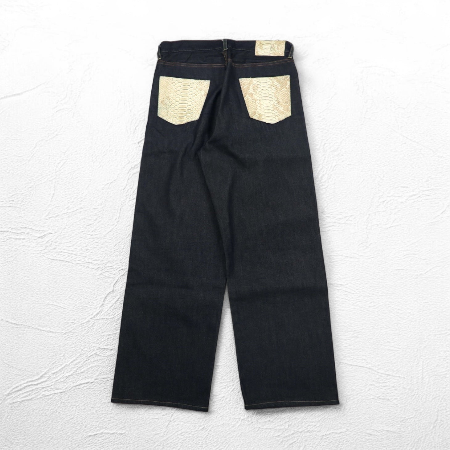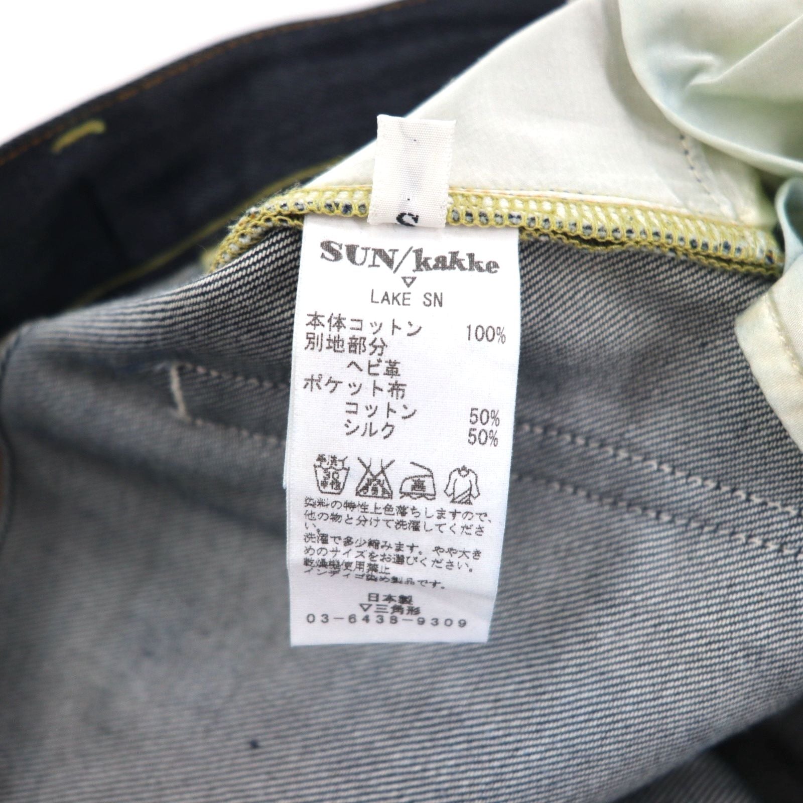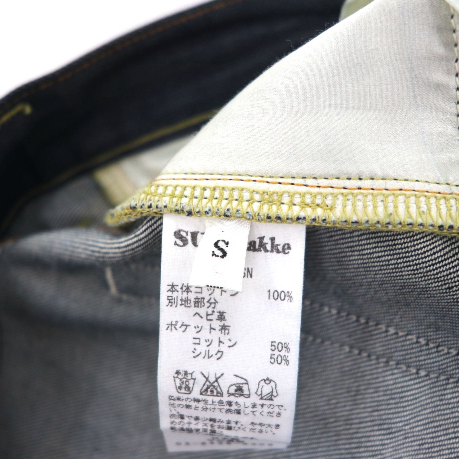 SUN/kakke デニム パンツ S インディゴ ブルー パイソン パッチ snake pocket denim pants 日本製