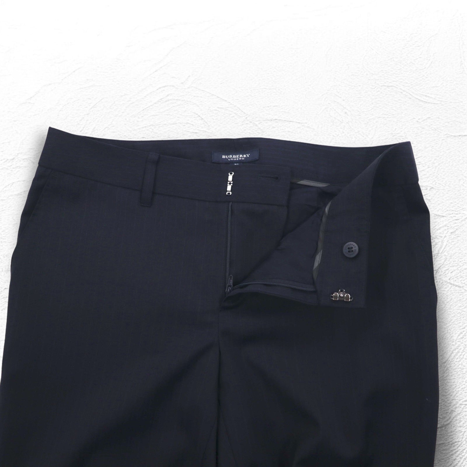 BURBERRY スラックスパンツ M ネイビー ストライプ ウール 日本製
