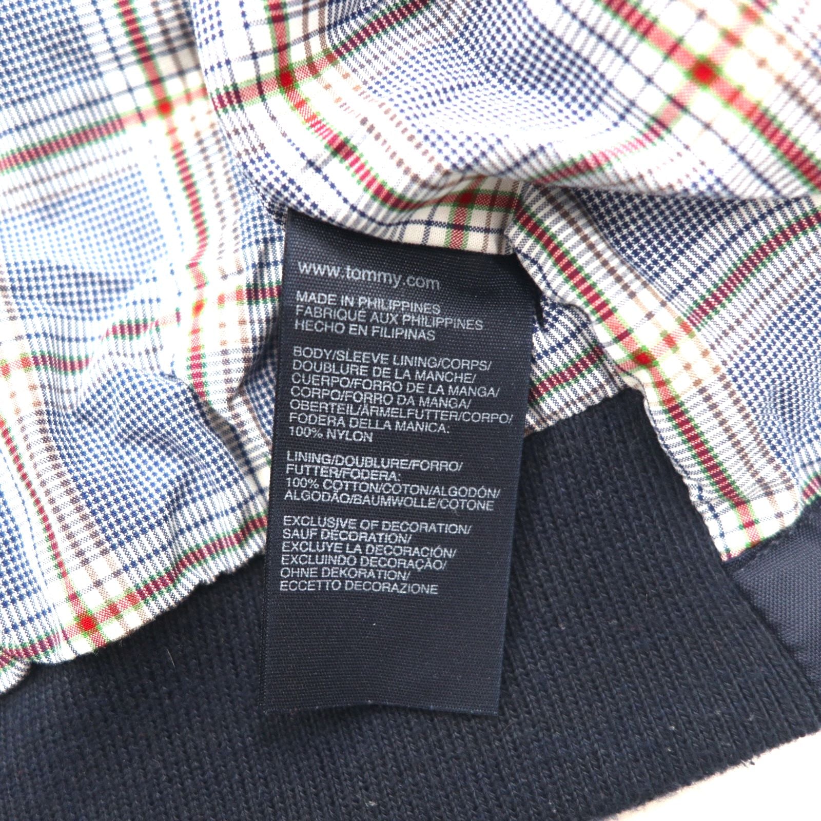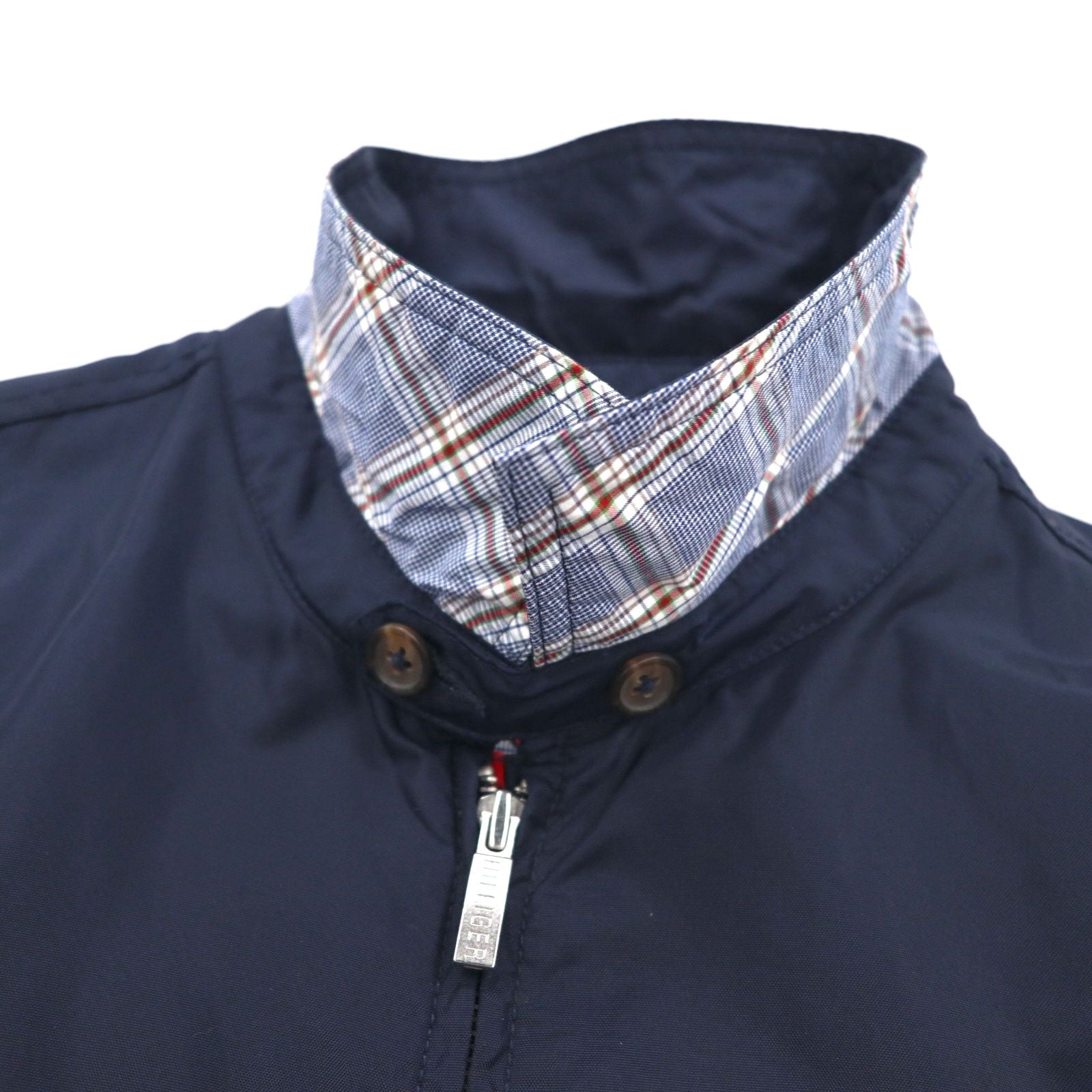 TOMMY HILFIGER スウィングトップ ハリントンジャケット XL ネイビー ナイロン 裏地チェック ワンポイントロゴ刺繍
