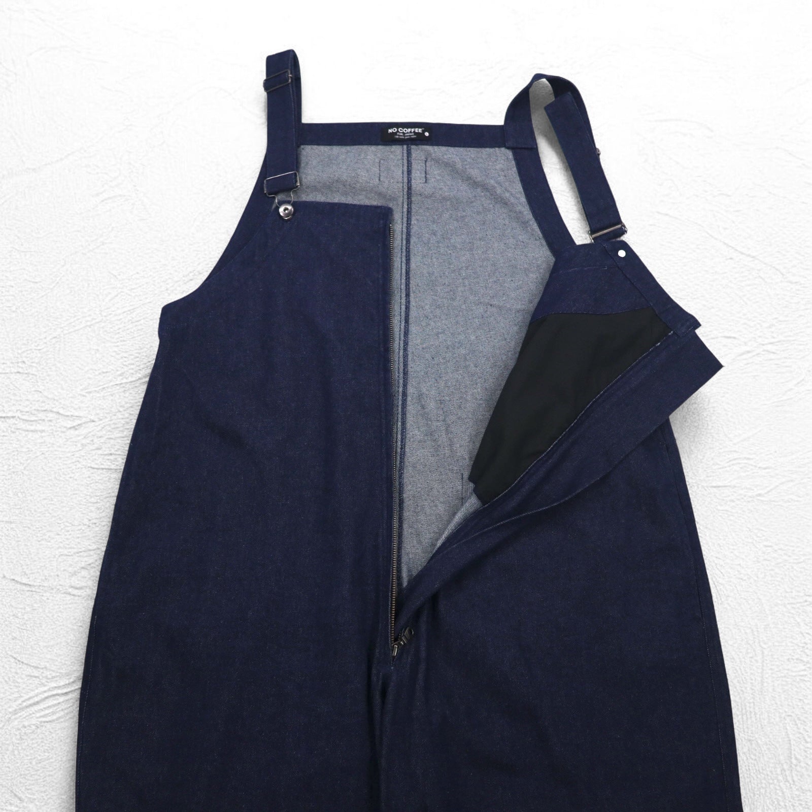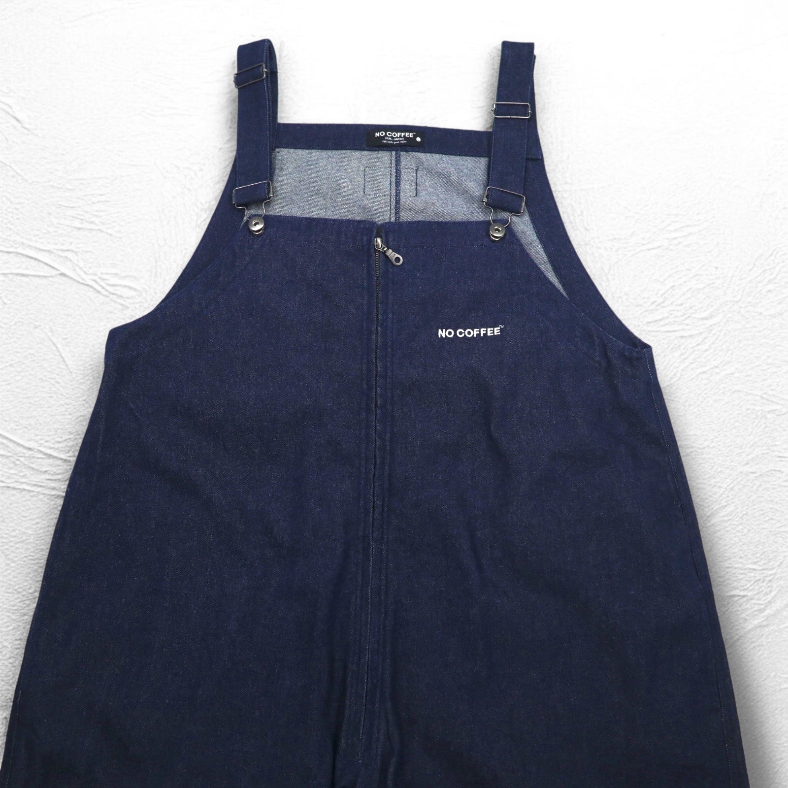 NC BY NO COFFE フロントジップ デニム オーバーオール L インディゴ ブルー 刺繍