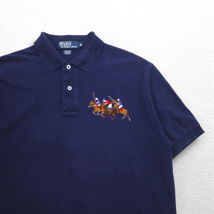 Polo by Ralph Lauren 90年代 ポロプレイヤー刺繍 ポロシャツ M ネイビー コットン 鹿の子