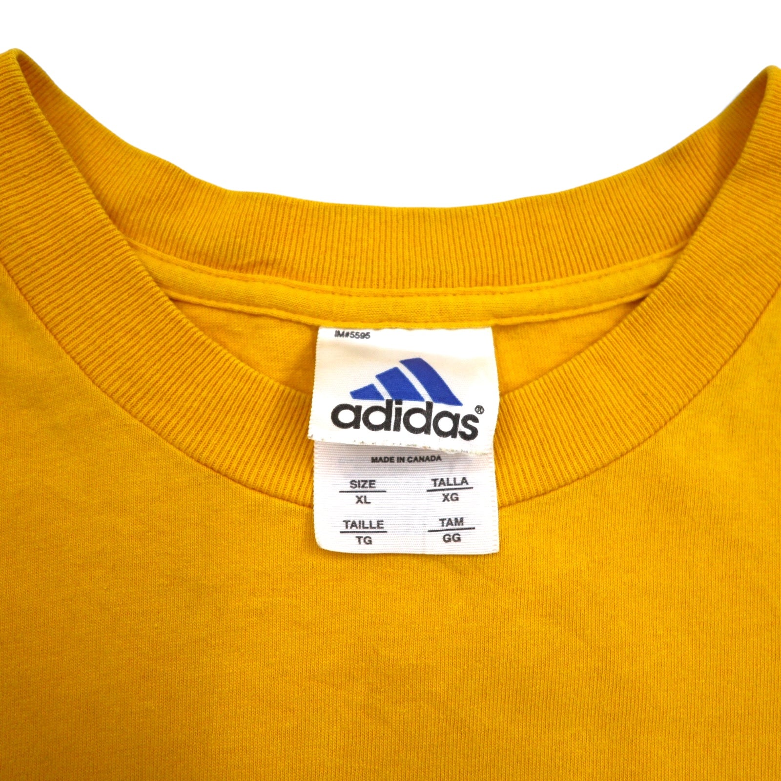 adidas カナダ製 00年代 3ストライプ ロゴプリント Tシャツ XL イエロー コットン