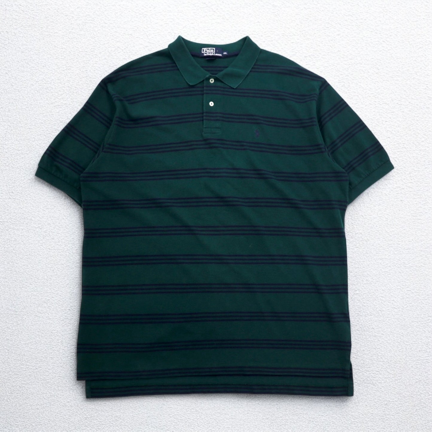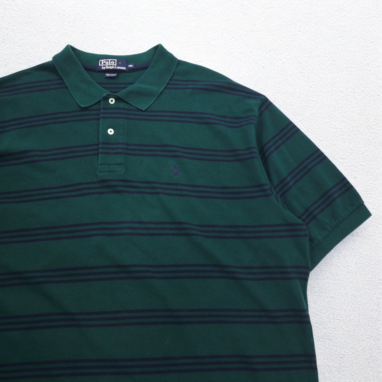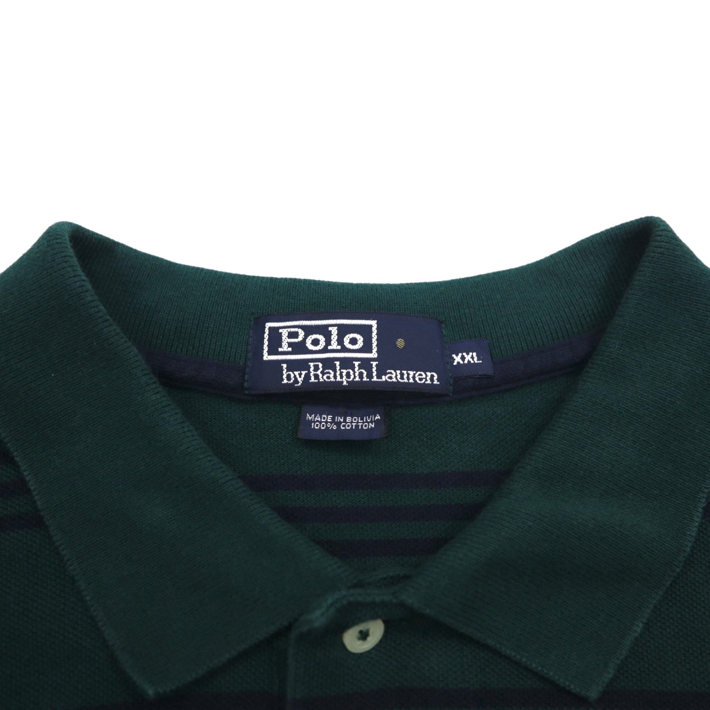 Polo by Ralph Lauren 90年代 ボーダー ポロシャツ 2XL グリーン コットン 鹿の子 スモールポニー刺繍
