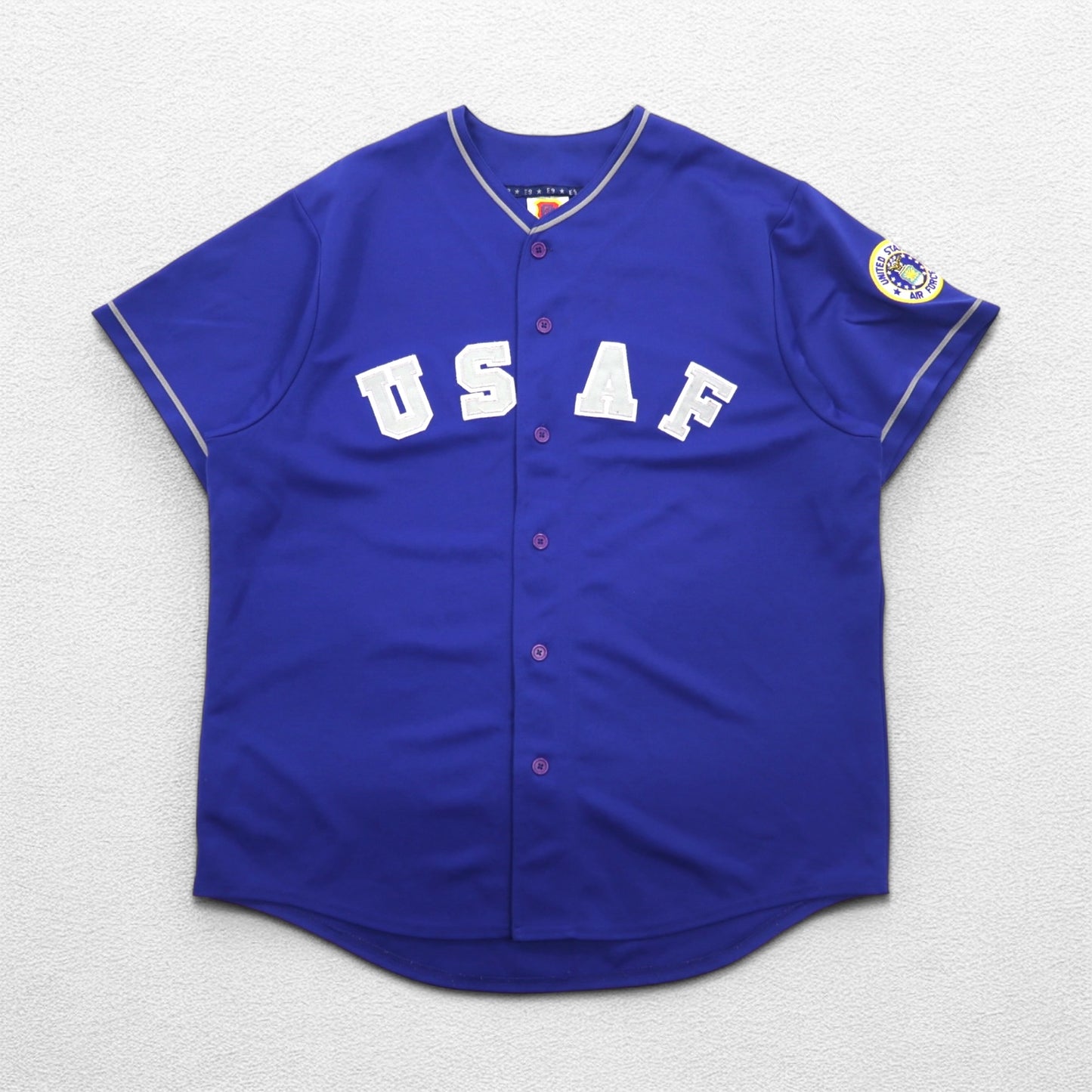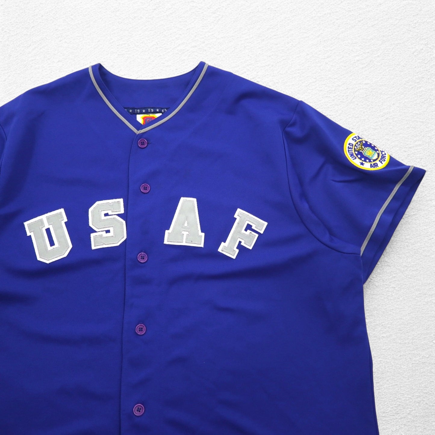 US AIR FORCE 米軍 ベースボールシャツ 2XL ブルー ポリエステル E9 DESIGN