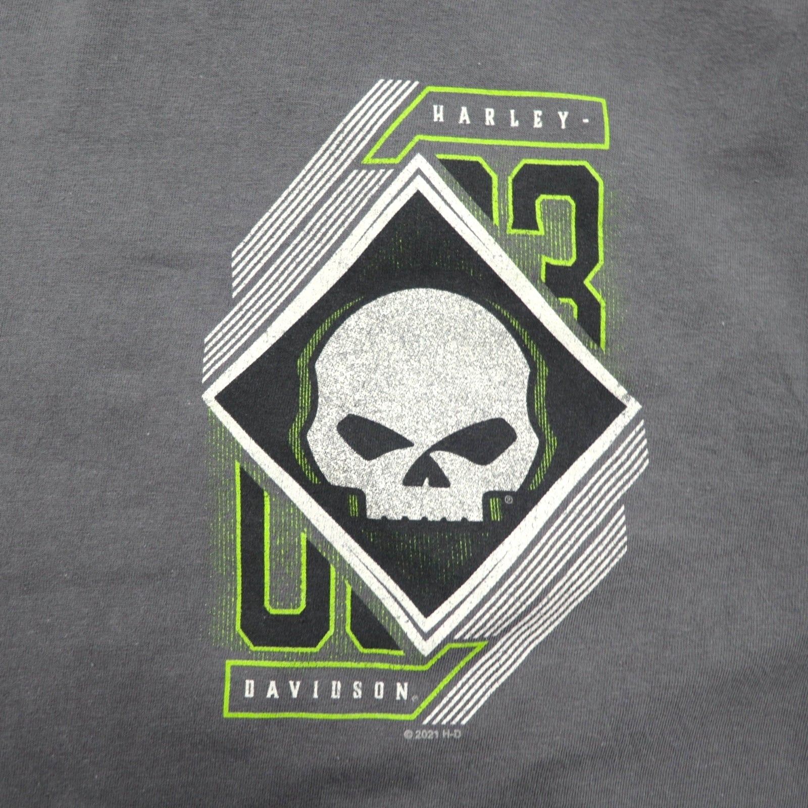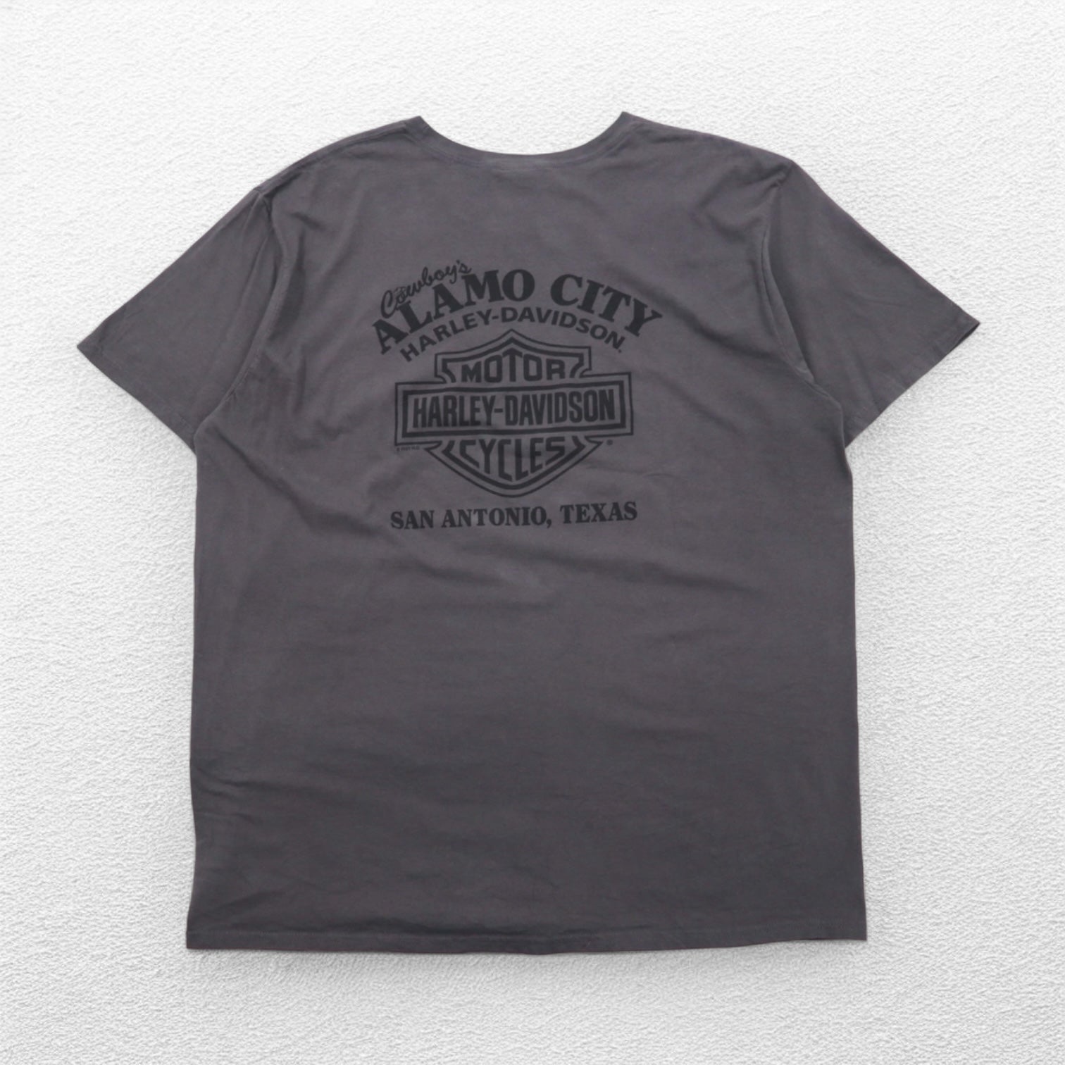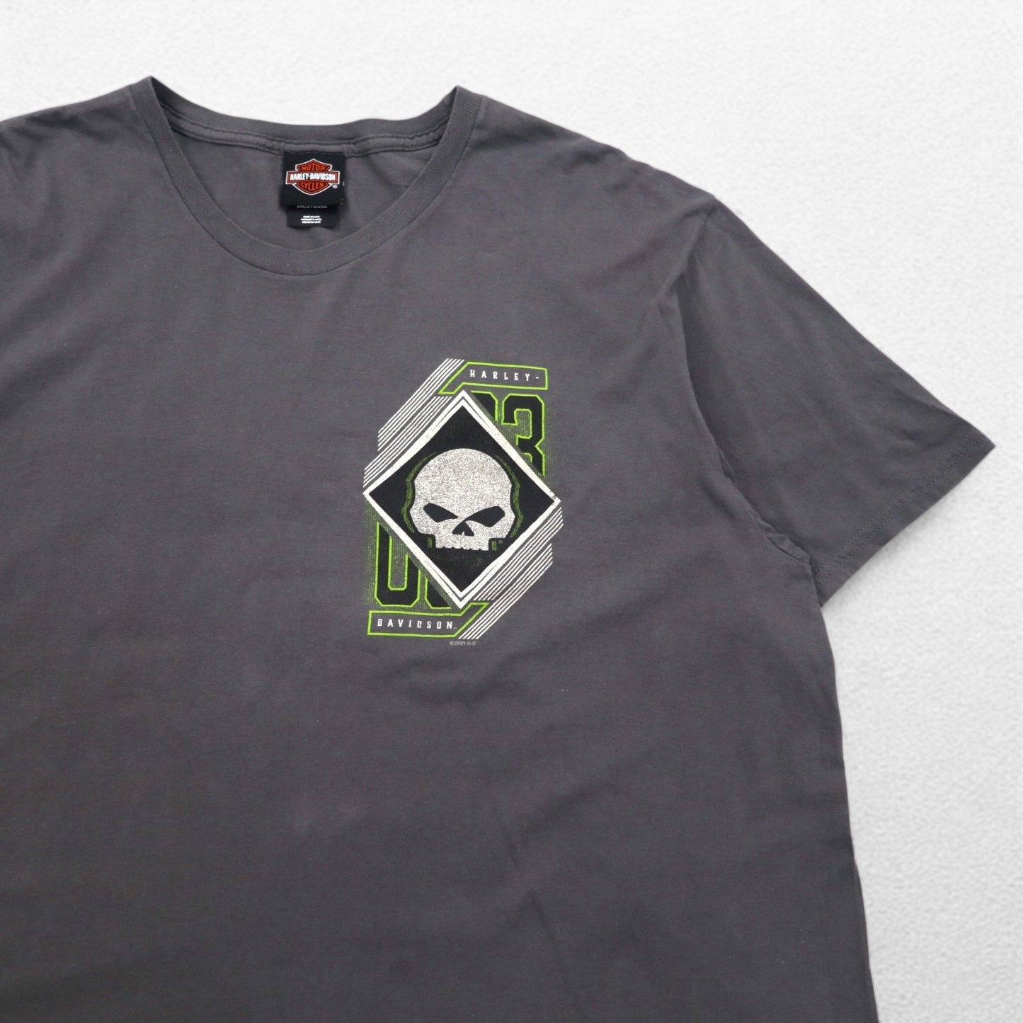 HARLEY DAVIDSON スカルプリント Tシャツ 2XL グレー コットン ALAMO CITY ハイチ製