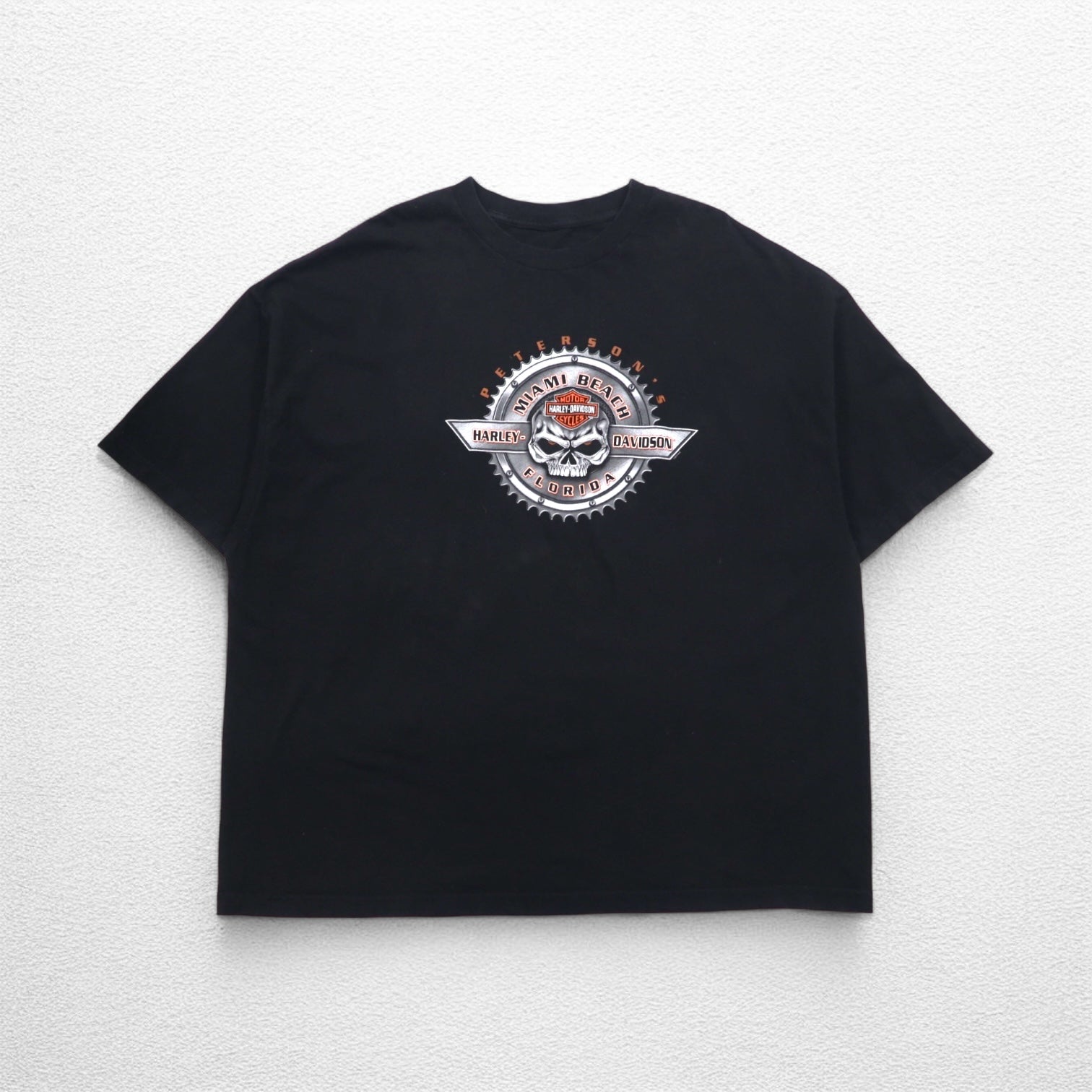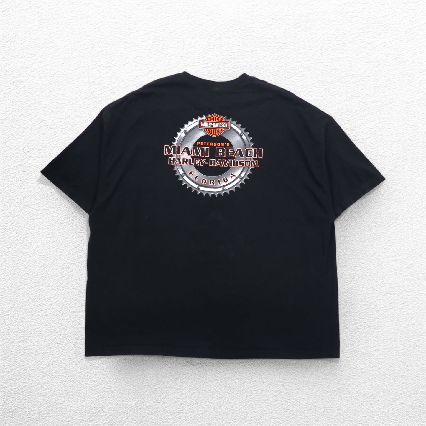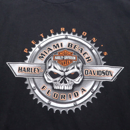 HARLEY DAVIDSON スカル 両面プリント Tシャツ 3XL ビッグサイズ ブラック コットン MIAMI BEACH