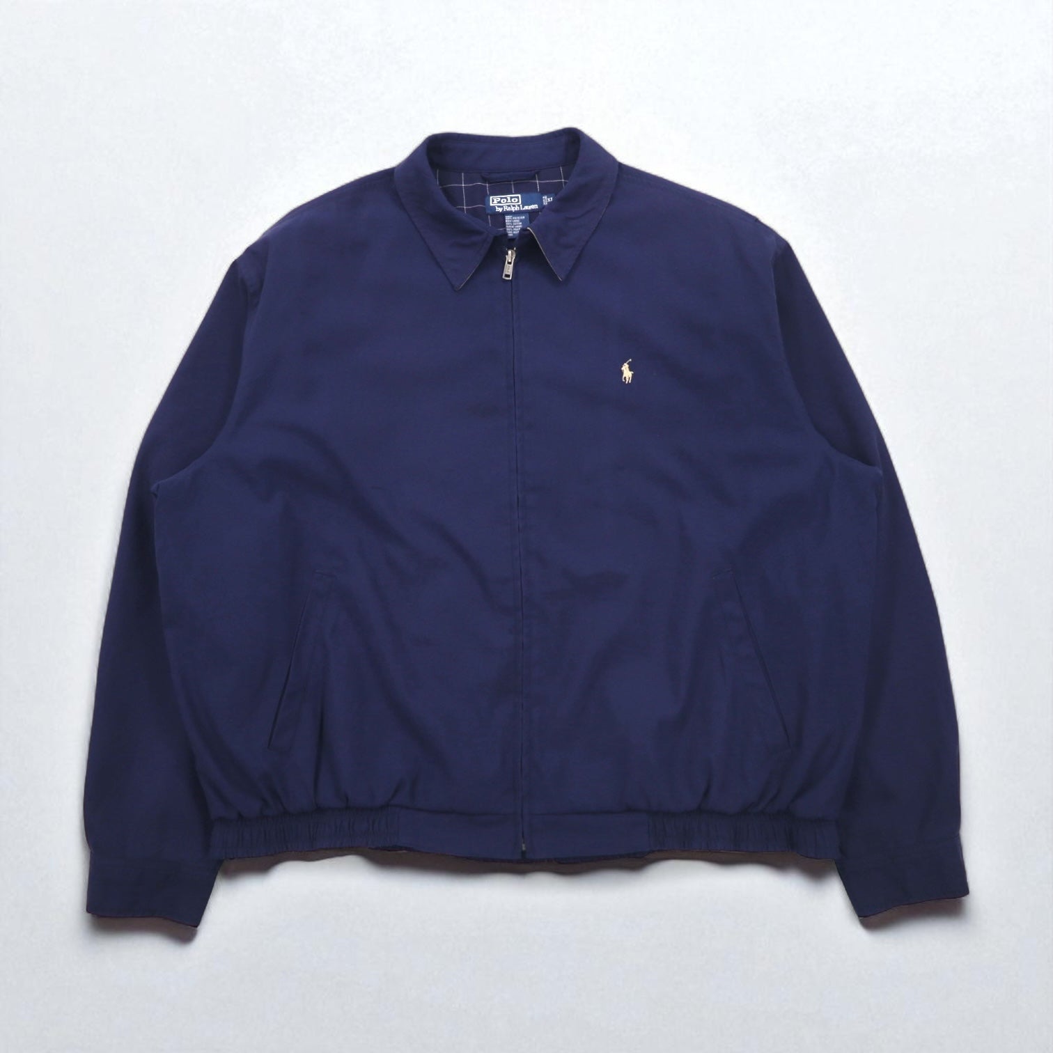 Polo by Ralph Lauren 90年代 スウィングトップ ハリントンジャケット XL ネイビー ポリエステル 裏地チェック スモールポニー刺繍