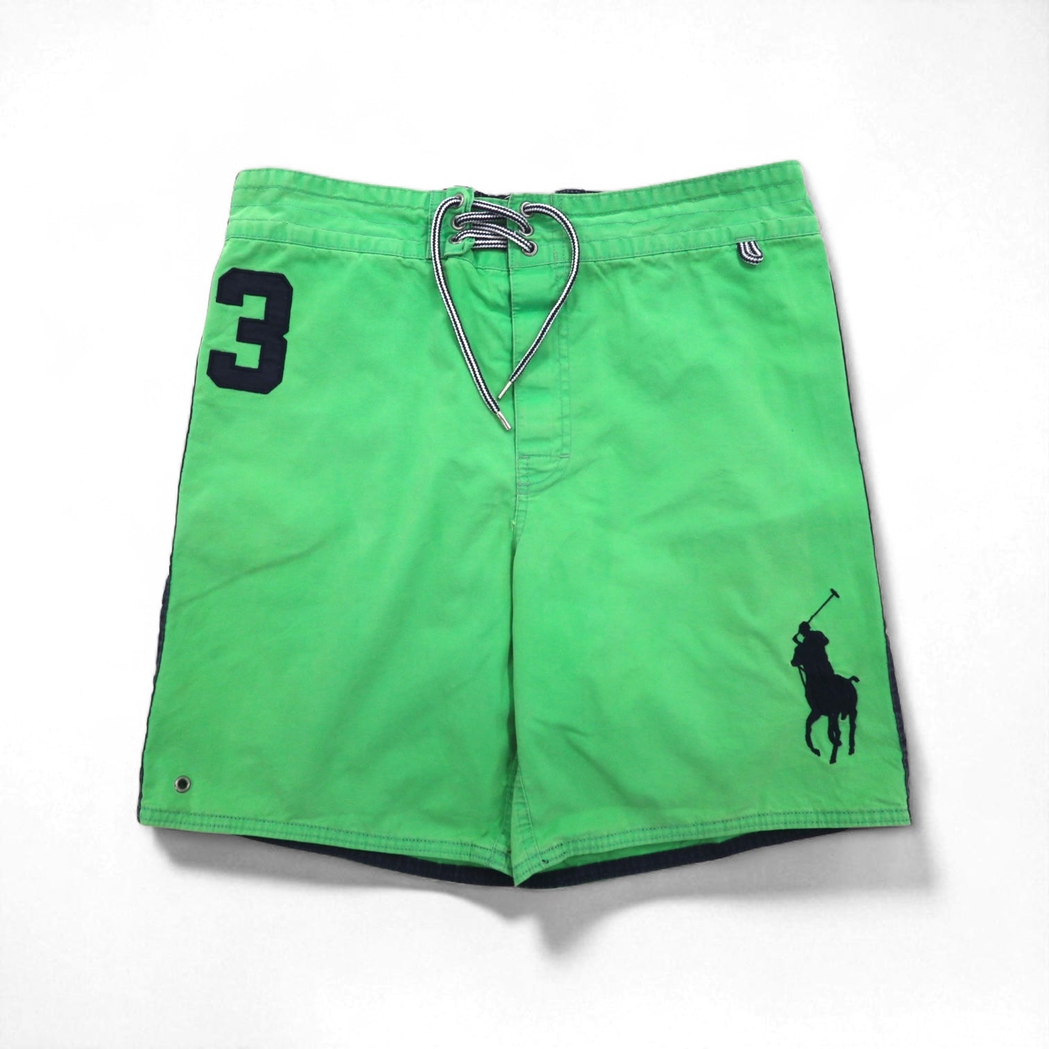 Polo by Ralph Lauren 90年代 水陸両用 ビッグポニー刺繍 スイムショートパンツ ハーフパンツ M グリーン コットン ナイロン