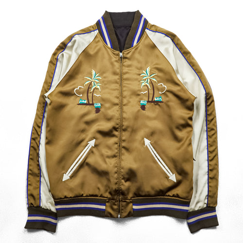 291295=HOMME LABO 00年代 ヴィンテージ リバーシブル スカジャン スーベニアジャケット L ブラウン 刺繍 ALOHA HAWAIIAN ISLANDS