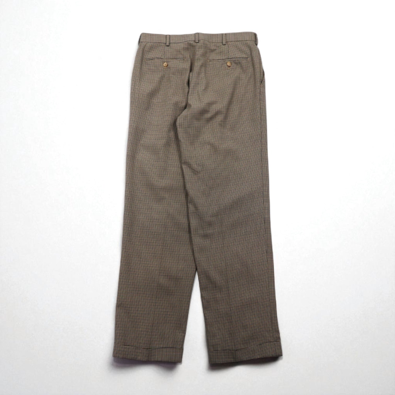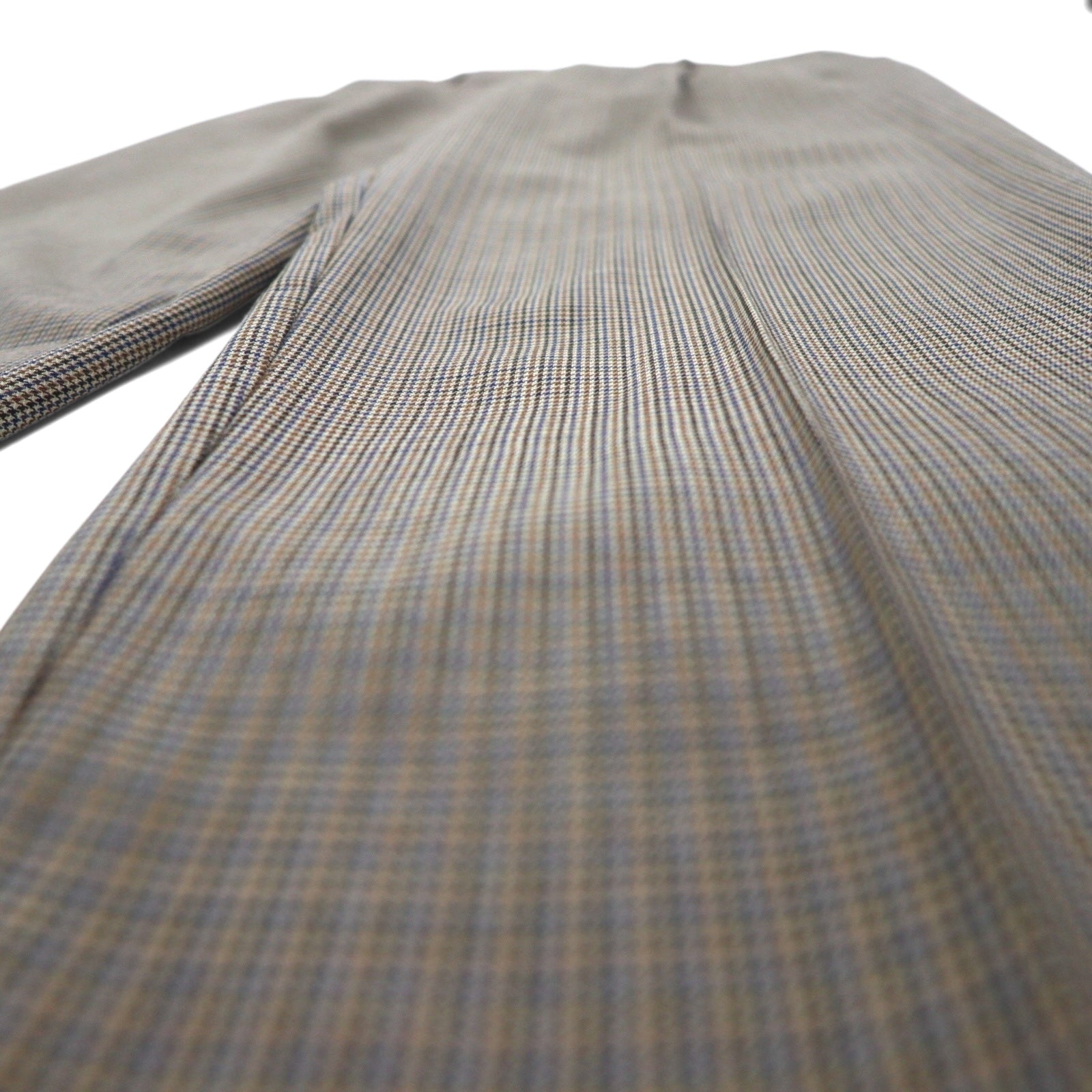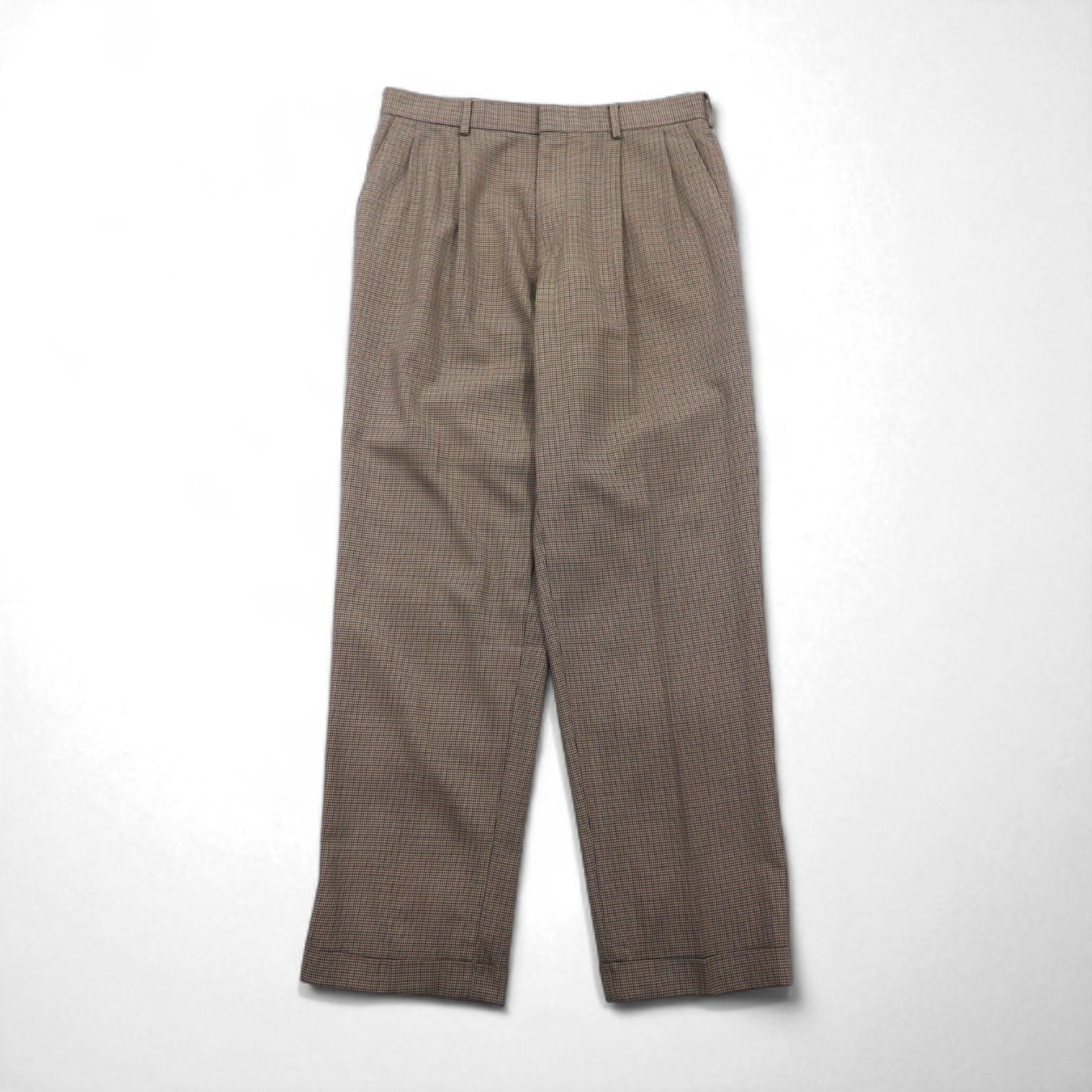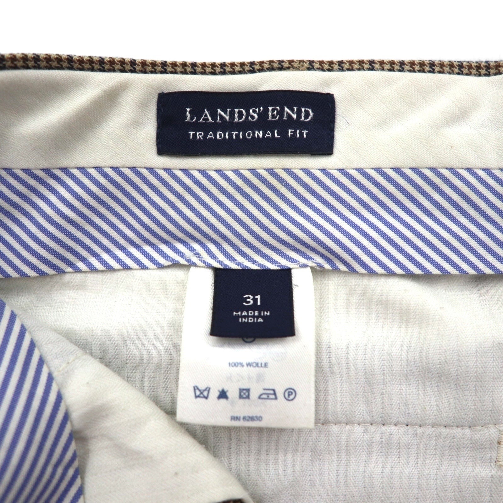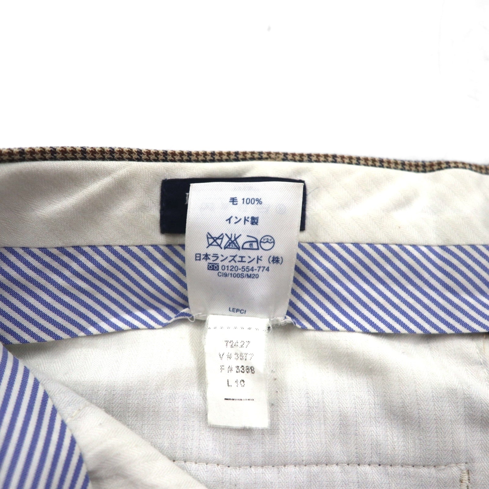 LANDS' END 2タック ワイド スラックスパンツ M ブラウン グレンチェック ウール