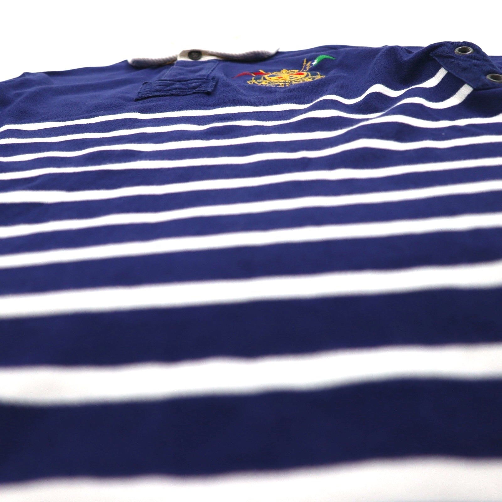 POLO RALPH LAUREN ボーダー ポロシャツ S ネイビー ボーダー 鹿の子 エンブレムロゴ刺繍 RLYC