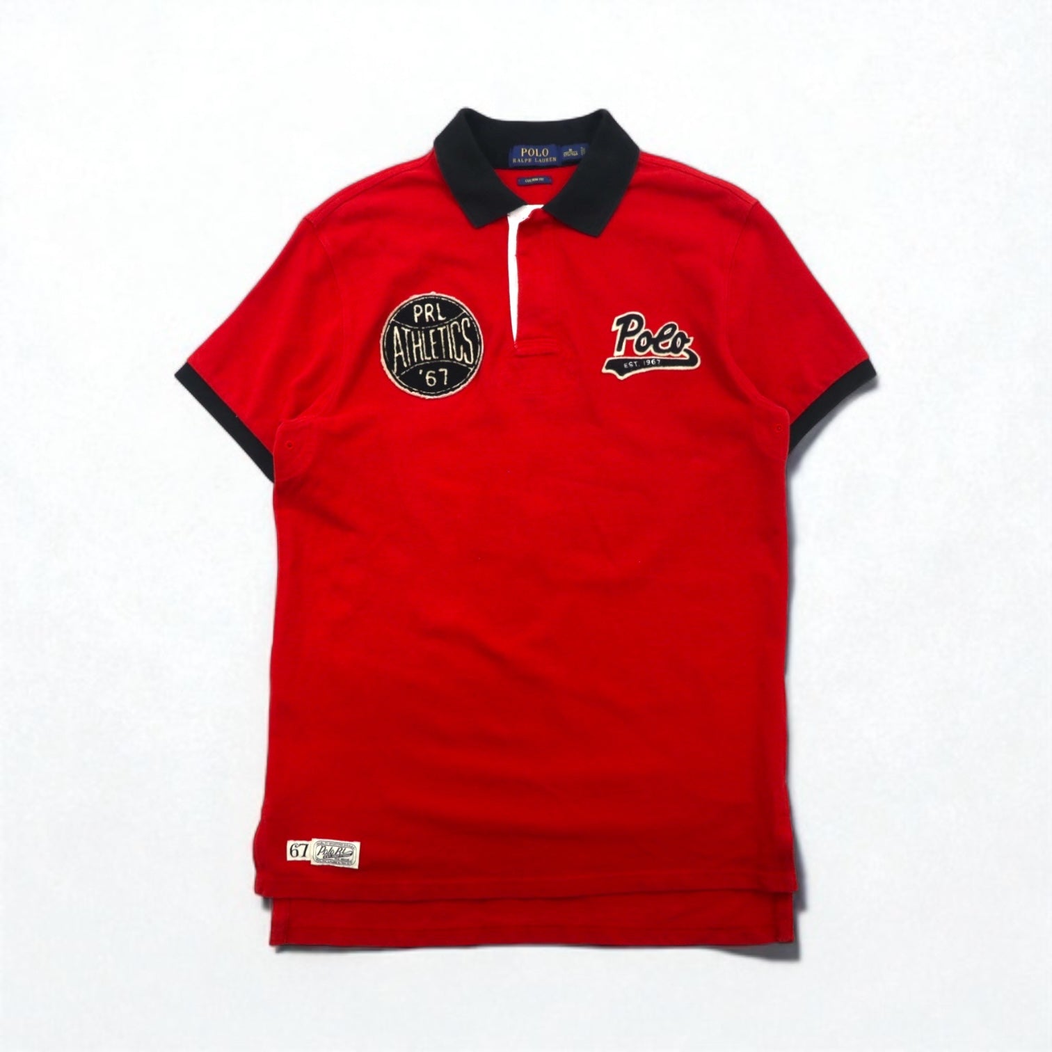 POLO RALPH LAUREN ポロシャツ M レッド コットン 鹿の子 ワッペン PRL ATHLETICS '67
